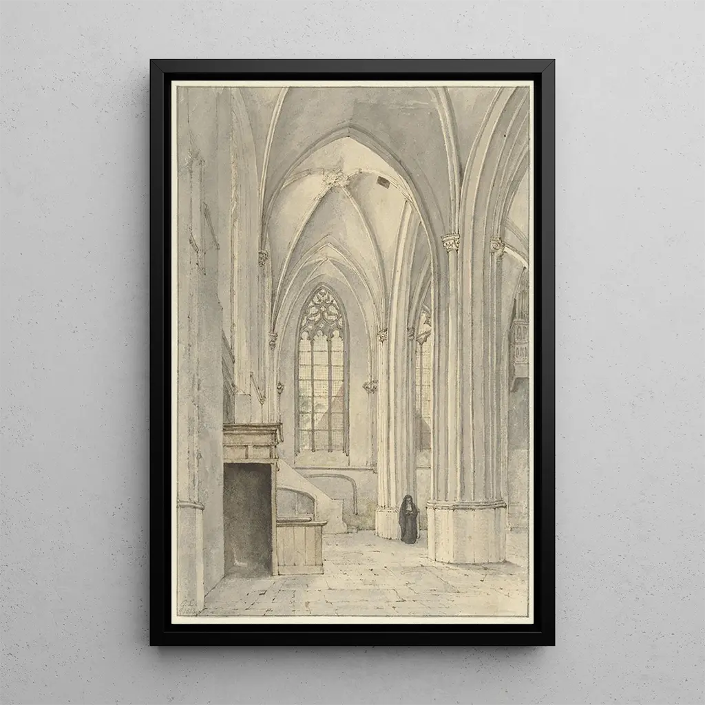 Gerrit Lamberts, aktiv i det XIX. århundrede, er kendt for sine skildringer af indretningsdetaljer af kirker og landskaber. Påvirket af den romantiske bevægelse, stræber han efter at fange den åndelige essens af de steder, han maler. Hans arbejde skiller sig ud ved en omhyggelig opmærksomhed på arkitektoniske detaljer og en subtil brug af lys. Lamberts har formået at etablere sig i den hollandske kunstverden, og efterlader en arv, der fortsat inspirerer nutidige kunstnere. Hans unikke tilgang til kunsttryk af indretning vidner om vigtigheden af spiritualitet i kunstværket fra hans tid.