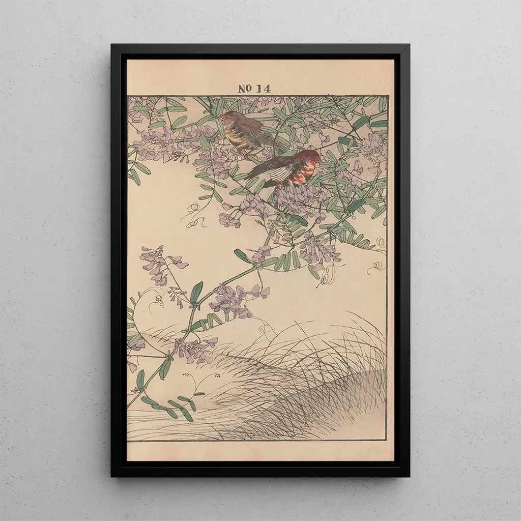 Den kunsttryk Keinen kach gafu Pl016 af Imao Keinen er et værk, der inviterer til at dykke ned i et univers, hvor naturen blomstrer under en delikat pensel. De bløde farver og de blomsteragtige mønstre flettes yndefuldt sammen og skaber en beroligende atmosfære. Teknikken med silke-maling, typisk for perioden, giver dette lærred en lethed og en flydende kvalitet, der fanger blikket. Hvert detalje, fra kronblade til blade, er gengivet med omhu, hvilket gør dette værk til en ægte hyldest til naturens flygtige skønhed.