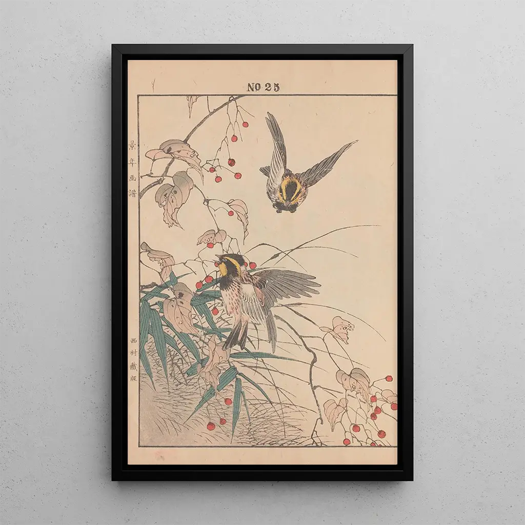 I denne kunsttryk af Keinen kach gafu Pl027 tager kunstneren Imao Keinen os med til en verden, hvor naturen blomstrer med ynde. De delikate farver og de minutøse detaljer af blomster og fugle skaber en fredelig og kontemplativ atmosfære. Akvarelteknikken, kombineret med præcise penselstrøg, giver liv til hvert element og inviterer betragteren til at fordybe sig i denne idylliske scene. Dette kunsttryk fremkalder naturens flygtige skønhed og fanger et øjeblik af ro og pragt.