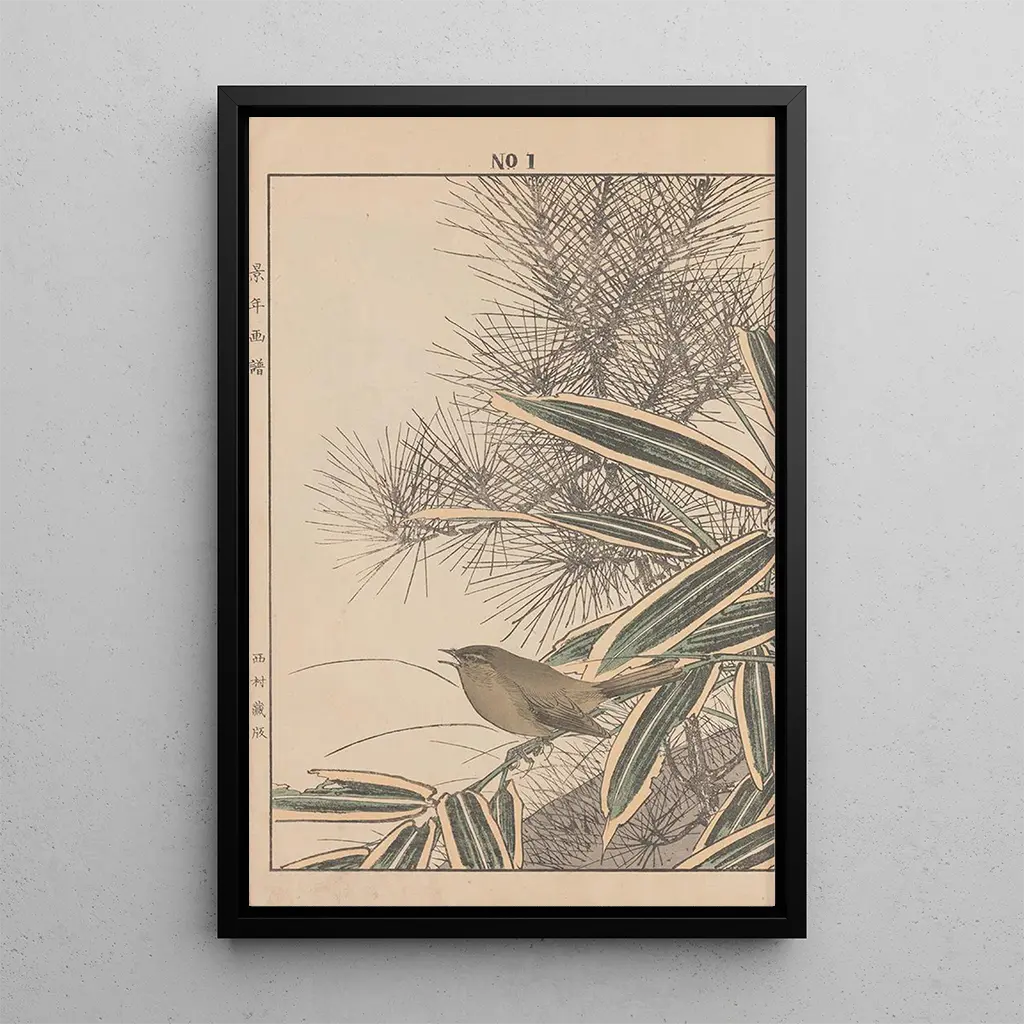 Keinen kach gafu Pl043 kunsttryk dykker ned i en delikat verden, hvor naturen blomstrer med ynde. Nuancer af grønt, blåt og beige smelter harmonisk sammen og skaber en beroligende og kontemplativ atmosfære. Teknikken med træsnit på papir, typisk for japansk kunst, fremhæver detaljerede elementer, raffinerede teksturer og en perfekt balance mellem elementerne. Hvert blad, hver blomst synes at vibrere af en egen livskraft, hvilket inviterer betragteren til at fordybe sig i dette fredelige og poetiske landskab.