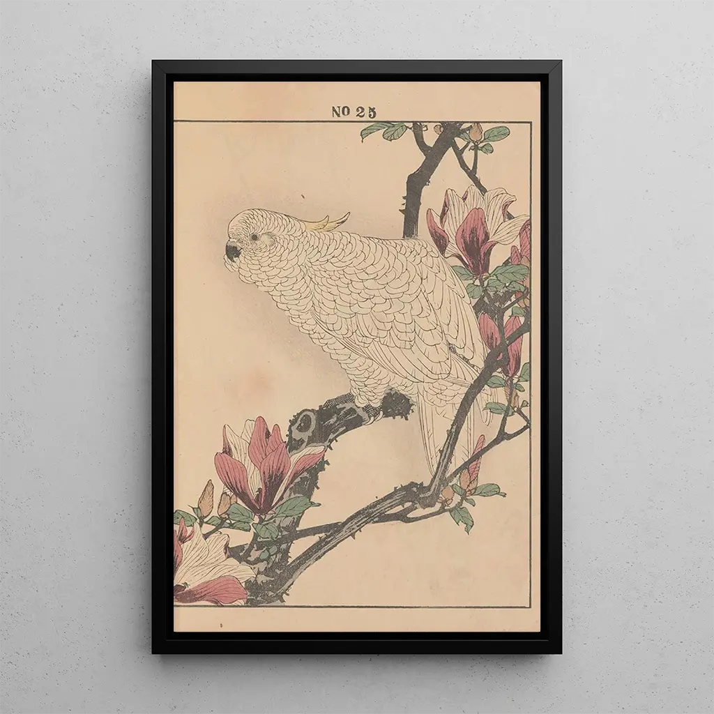 Kunsttrykket Keinen kach gafu Pl074 af Imao Keinen fremkalder en dyb ro gennem sine delikate blomsterrepræsentationer. Pastelfarverne blander sig subtilt, hvilket skaber en beroligende atmosfære, der inviterer til eftertanke. Teknikken med japansk ukiyo-e, med sine præcise linjer og raffinerede detaljer, fremhæver den flygtige skønhed i naturen. Hvert element, fra kronblade til blade, synes at fange et flygtigt øjeblik, som en hyldest til den naturlige verdens skønhed. Dette værk er et ægte vindue til et univers, hvor natur og kunst mødes i en harmonisk dans.