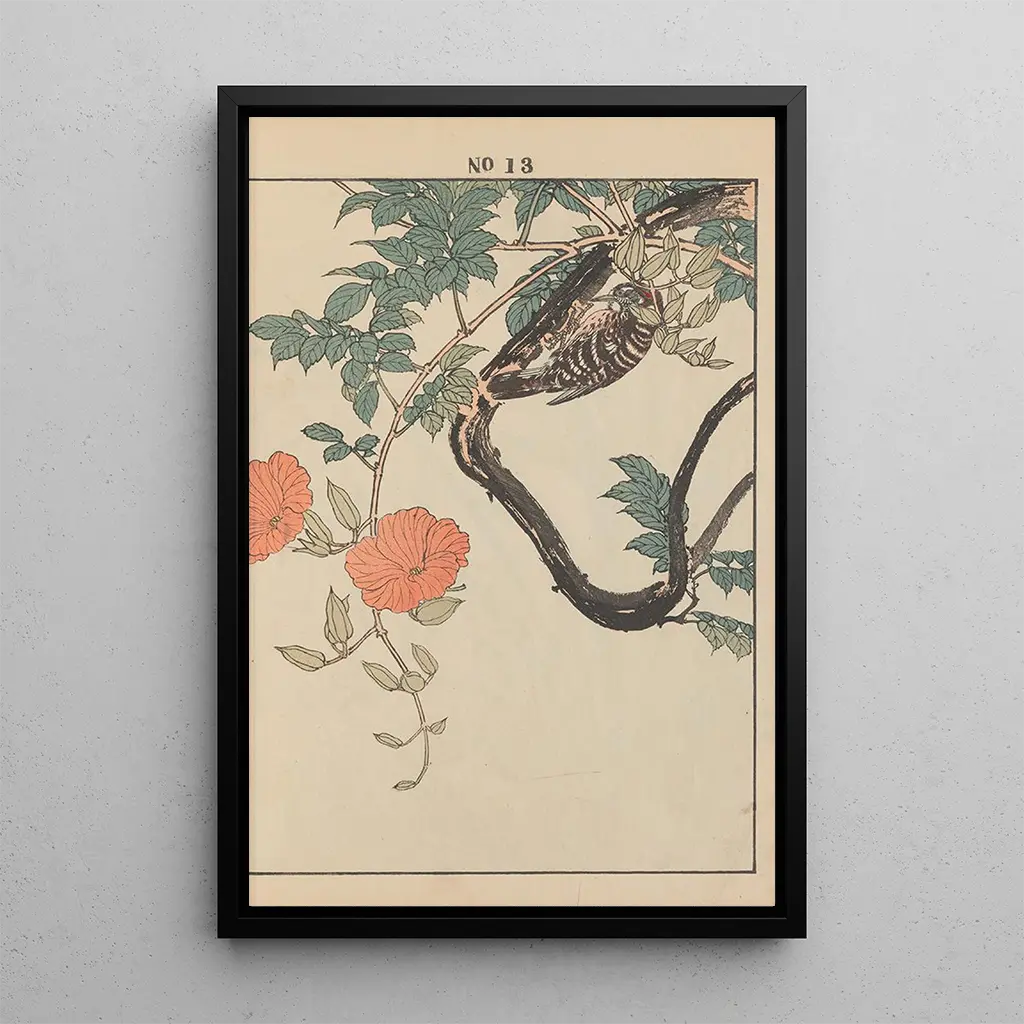 Imao Keinen, en ikonisk figur inden for ukiyo-e træsnit, formåede at fange essensen af naturen gennem sine værker. Aktiv i slutningen af 1800-tallet, blev han påvirket af de japanske kunsttraditioner, samtidig med at han integrerede moderne elementer. Hans arbejde skiller sig ud gennem en omhyggelig opmærksomhed på detaljer og en følsomhed over for skønheden i blomster og fugle. Keinen var med til at popularisere blomsterkunsttryk, hvilket gjorde ham til en uundværlig kunstner i sin tid og en forløber inden for kunsten at skildre naturen med så stor finesse.
