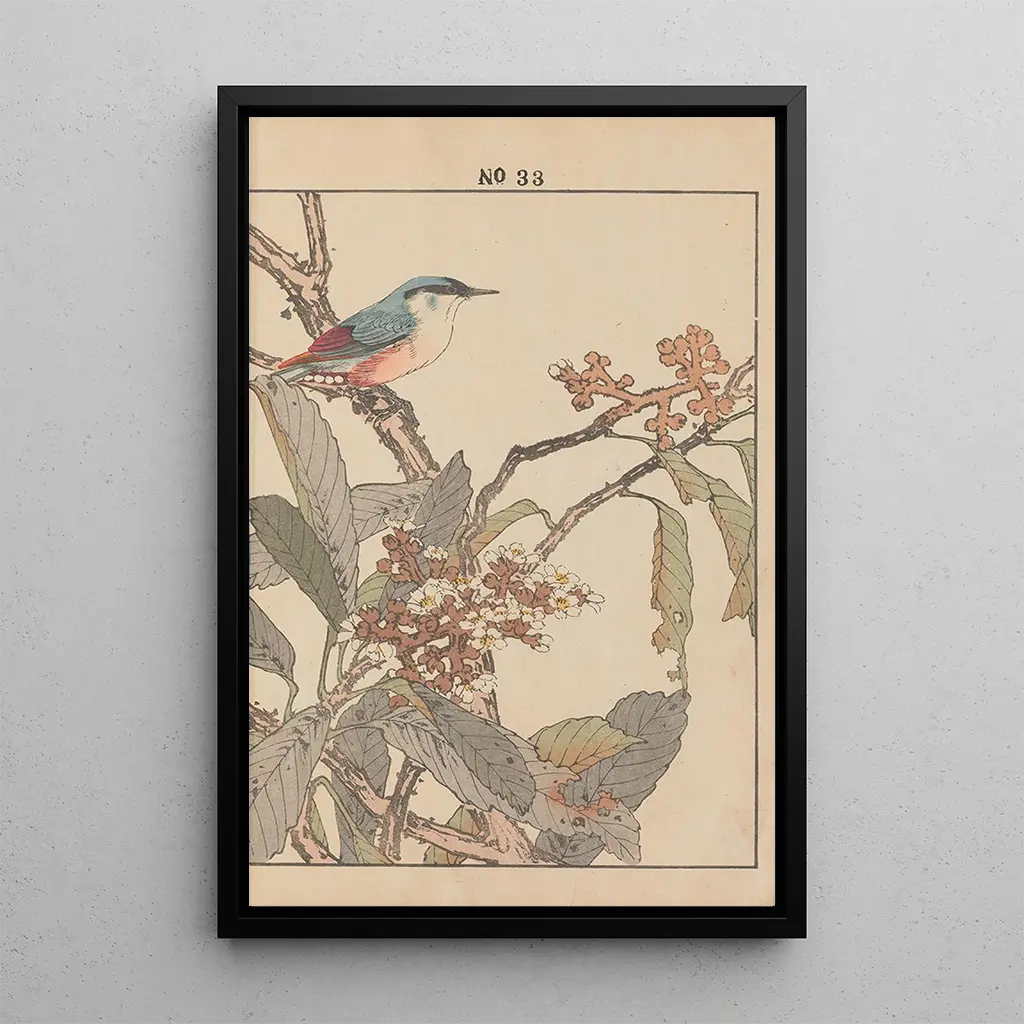 Keinen kach gafu Pl162 er en kunsttryk, der er en sand hyldest til naturen, og fanger den flygtige skønhed af blomster i en delikat og raffineret stil. Pastelfarverne blander sig subtilt, hvilket skaber en beroligende atmosfære, der inviterer til eftertanke. Teknikken med ukiyo-e, karakteristisk for japansk kunst, fremhæver de fine detaljer i kronblade og blade, mens den enkle baggrund understreger rigdommen af blomsterlige motiver. Hvert element synes at danse på lærredet og tilbyder et visuelt skue, der transporterer betragteren til en hemmelig have, hvor roen hersker.