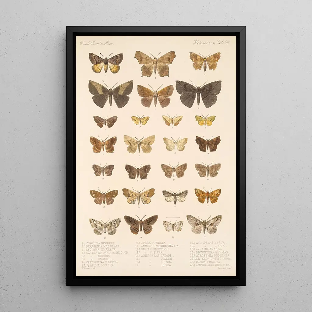 Kunsttrykket af "Insecta Lepidoptera Heterocera Pl 098" er et ideelt valg til at forskønne dit hjem, uanset om det er i stuen, på kontoret eller i soveværelset. Dets trykkvalitet sikrer en trofast gengivelse af farver og detaljer i det originale værk, hvilket tilføjer et strejf af elegance og nysgerrighed til din indretning. Dette kunstværk tiltrækker opmærksomhed og skaber samtaler, samtidig med at det tilføjer en sofistikeret note til dit rum. Ved at vælge dette lærred, får du et unikt stykke, der forener kunst, videnskab og natur, og beriger dit daglige miljø.