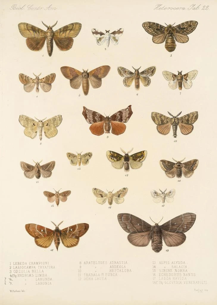 Maleri Insecta Lepidoptera Heterocera Pl 022 - Frederick DuCane Godman | Kunsttryk