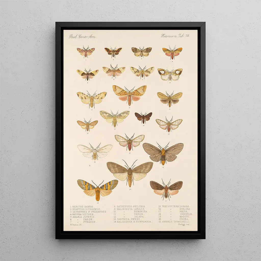 Kunsttrykket af "Insecta Lepidoptera Heterocera Pl 074" er et dekorativt stykke, der vil berige dit hjem, uanset om det er i stuen, på kontoret eller i soveværelset. Dets trykkvalitet sikrer en trofast gengivelse af de originale detaljer, hvilket gør det muligt at værdsætte værkets delikatesse. Med sin æstetiske appel bliver dette lærred et ægte blikfang, der vækker nysgerrighed og beundring. Forkæl dig selv med dette kunsttryk for at tilføre et strejf af natur og elegance til din indretning, samtidig med at du fejrer skønheden i natlige insekter.