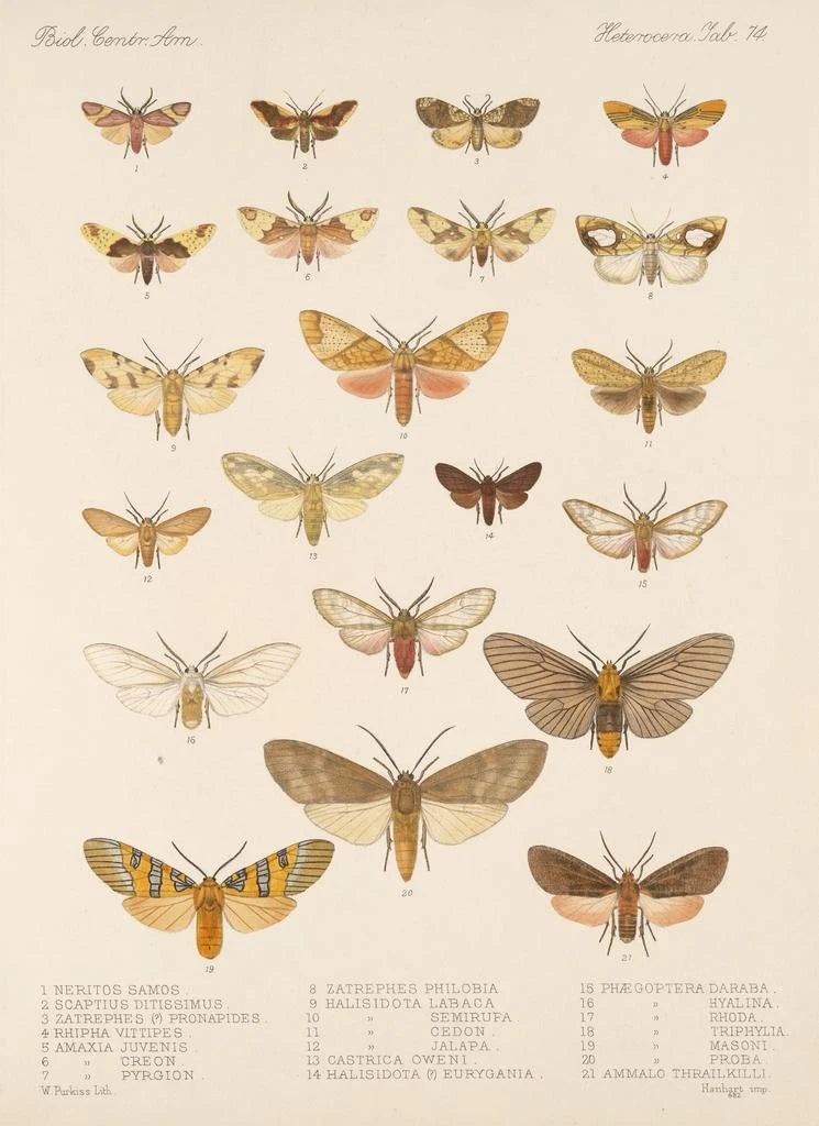 Maleri Insecta Lepidoptera Heterocera Pl 074 - Frederick DuCane Godman | Kunsttryk