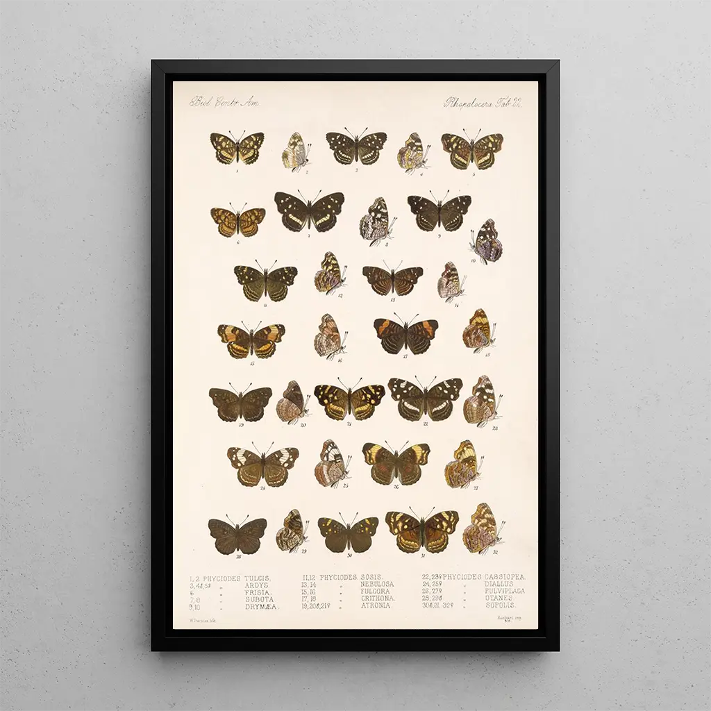Reproduktionen af "Insecta Lepidoptera Rhopalocera Pl 022" er et ideelt dekorativt valg for at tilføre et strejf af natur til dit hjem. Uanset om det er i stuen, på kontoret eller i soveværelset, tiltrækker dette lærred øjet og vækker nysgerrighed. Dets trykkvalitet garanterer en trofast gengivelse af de originale farver, samtidig med at det tilbyder en æstetisk tiltalende detalje. Ved at integrere dette kunstværk i din indretning skaber du et rum, der hylder naturens skønhed, samtidig med at det tilføjer et strejf af elegance og sofistikation.