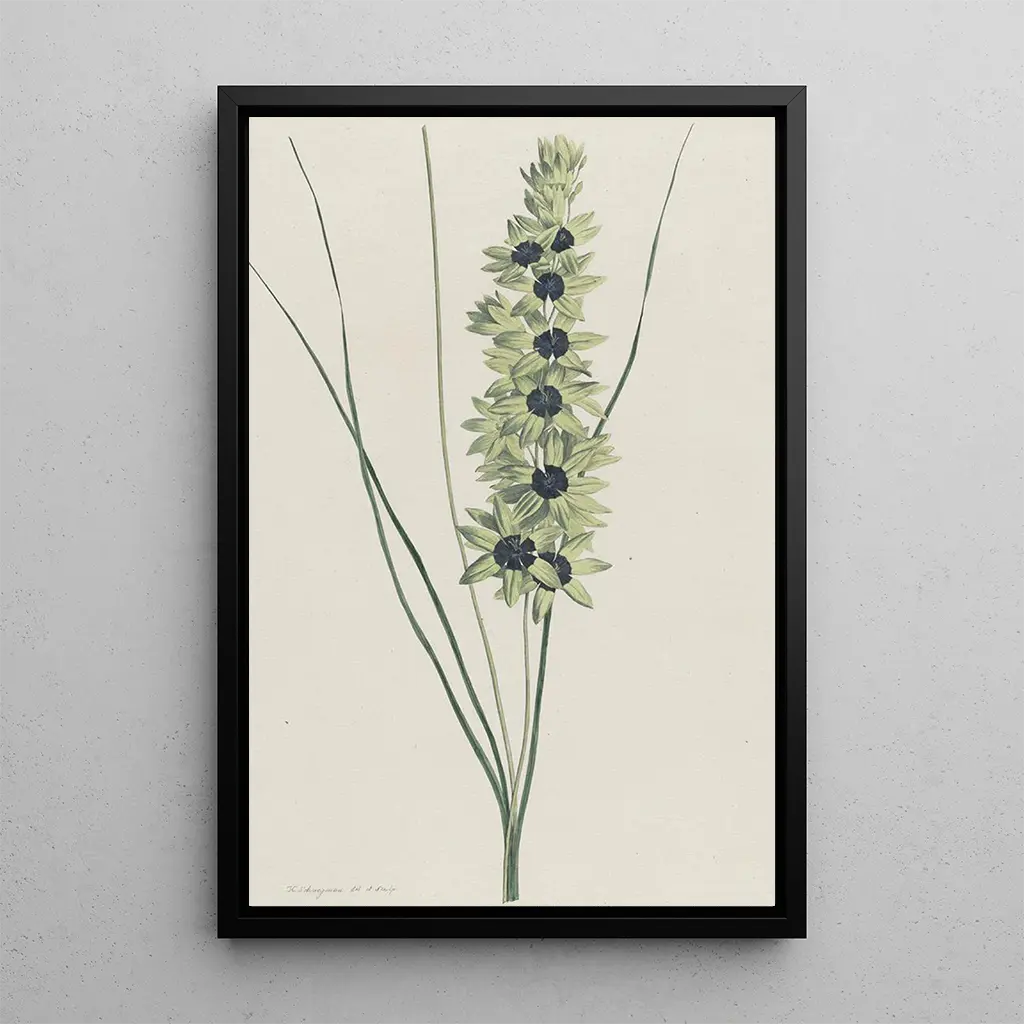 L'Iris africain Ixia maculata viridis, malet af Hendrik Schwegman, er et levende værk, der fejrer skønheden i floraen. Kompositionen er rig på farver, med skinnende grønne nuancer og strejf af gult og violet, der fremkalder mangfoldigheden af afrikanske landskaber. Den anvendte teknik af Schwegman gør det muligt at gengive delikatesse af kronblade og lyset fra det naturlige lys. Atmosfæren i dette lærred er glad og livlig, og transporterer betragteren til en frodig have, hvor naturen blomstrer i al sin pragt.