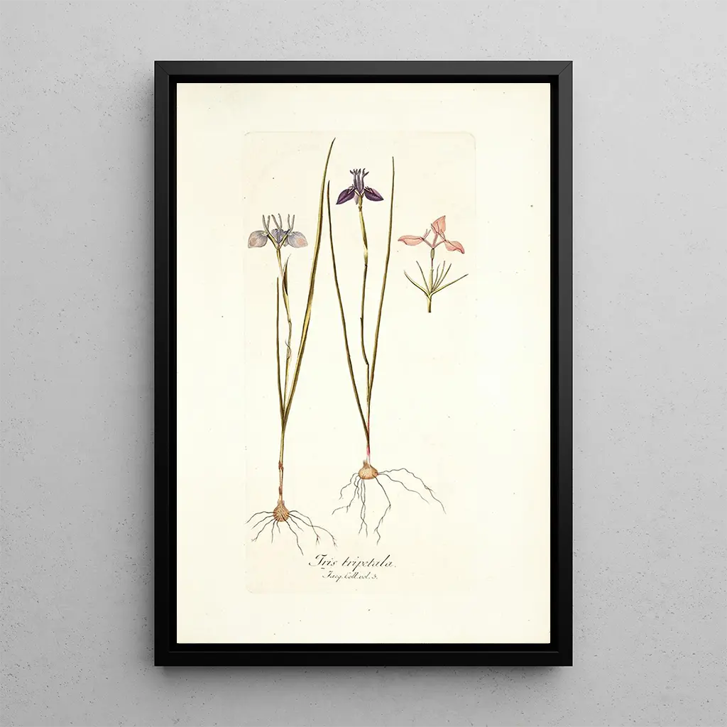 L'œuvre "Iris tripetala" af Nikolaus Joseph Freiherr von Jacquin er en slående repræsentation af denne ikoniske plante. De livlige farver i iris, der spænder fra dyb violet til strålende gult, skaber en levende og glædelig atmosfære. Kunstnerens teknik, der kombinerer botanisk præcision med kunstnerisk følsomhed, gør det muligt at fange blomsternes delikatesse og bladets kompleksitet. Hvert detalje er omhyggeligt observeret, hvilket inviterer seeren til at udforske naturens skønhed gennem Jacquins øjne. Dette lærred er meget mere end blot en illustration; det fremkalder biodiversitetens rigdom og formernes harmoni.