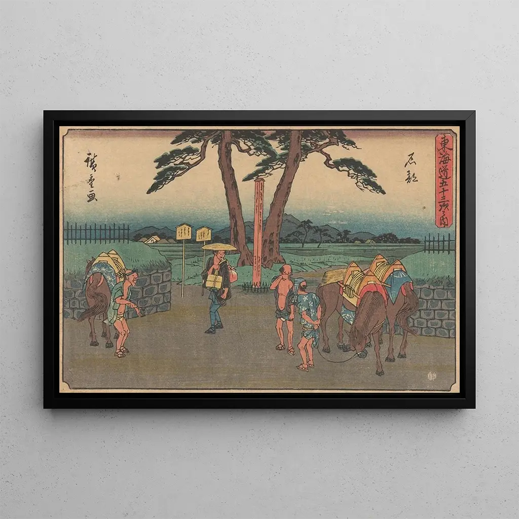 Andō Hiroshige, en ikonisk figur inden for ukiyo-e-bevægelsen i Japan i det 19. århundrede, formåede at fange essensen af sin tid gennem sine kunstværker. Inspireret af naturen og dagligdagen udviklede Hiroshige en karakteristisk stil, der kombinerer præcision og poesi. Hans kunsttryk, som det af Ishibe, vidner om en unik følsomhed over for verdens flygtige skønhed. Aktiv under Edo-perioden efterlod han sig en varig arv, der har inspireret mange vestlige og japanske kunstnere. Hans innovative tilgang til perspektiv og farve har sat sit præg på kunsthistorien og gjort ham til en af de mest respekterede mestre i sin tid.
