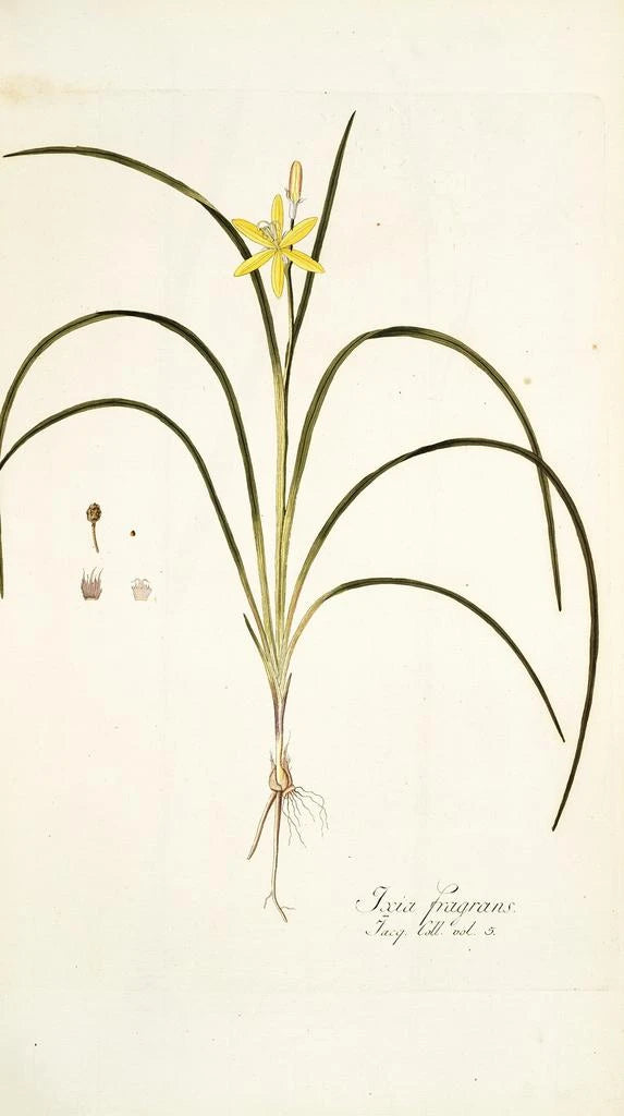Maleri Ixia fragrans - Nikolaus Joseph Freiherr von Jacquin | Kunsttryk Source: Tableau Ixia fragrans - Nikolaus Joseph Freiherr von Jacquin | Reproduction