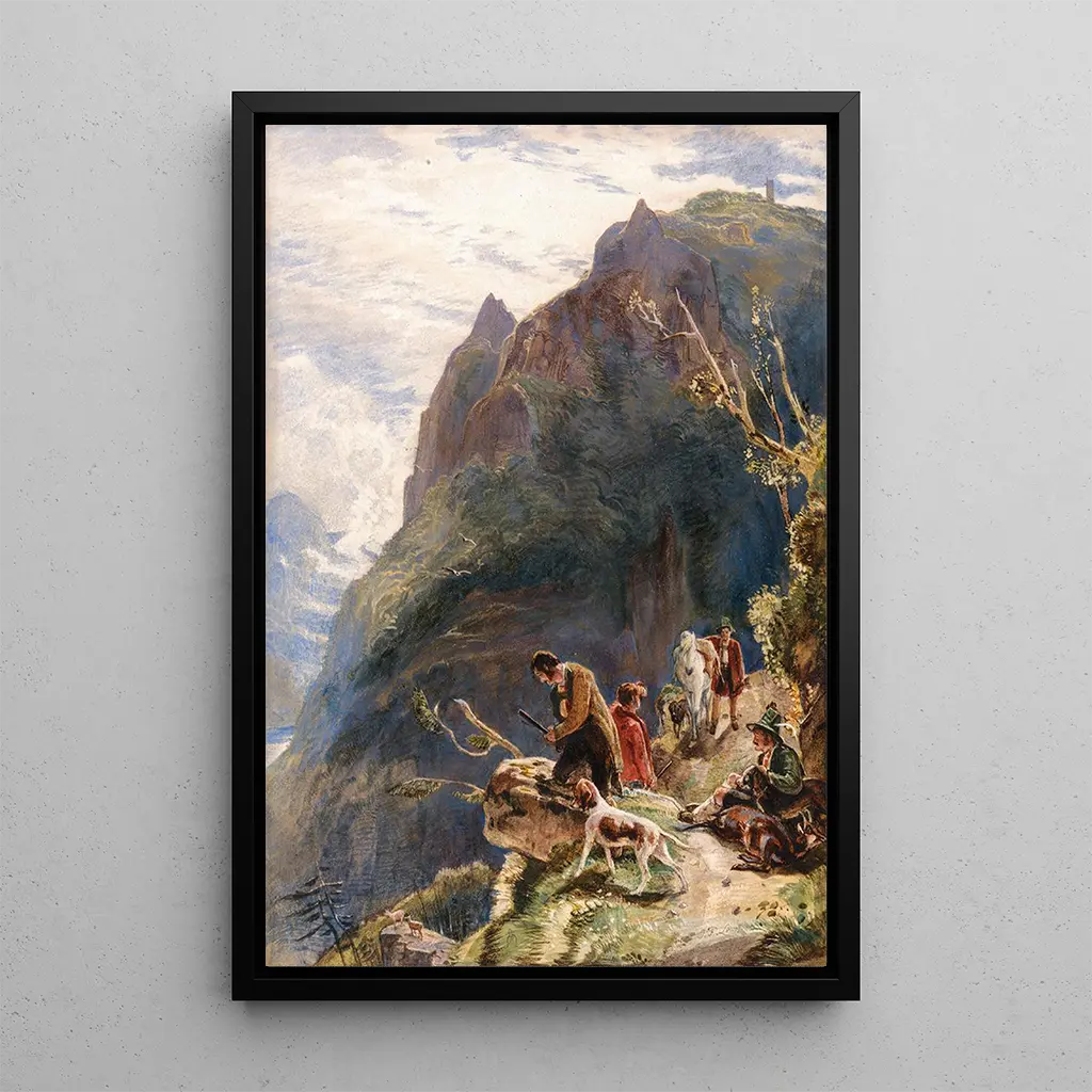 I dette fængslende værk dykker John Frederick Lewis ned i hjertet af de majestætiske Alper, hvor tyrolske jagtfolk, klædt i traditionelle kostumer, står stolt. Kompositionen er rig på detaljer, hver enkelt element er omhyggeligt gengivet med bemærkelsesværdig præcision. Farverne, der spænder fra dybe grønne nuancer i bjergene til varme brune toner i tøjet, skaber en atmosfære, der er både livlig og fredelig. Teknikken med akvarel, mestret af Lewis, gør det muligt at fange lys og skygge, hvilket tilføjer en næsten taktil dimension til scenen. Dette kunsttryk fremkalder en invitation til at udforske den vilde skønhed og kultur af tyrolerne.
