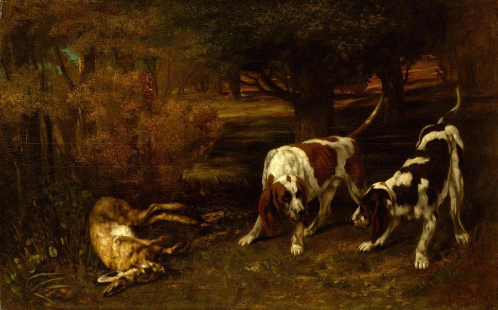 Kunsttryk | Jagt hunde med død hare - Gustave Courbet