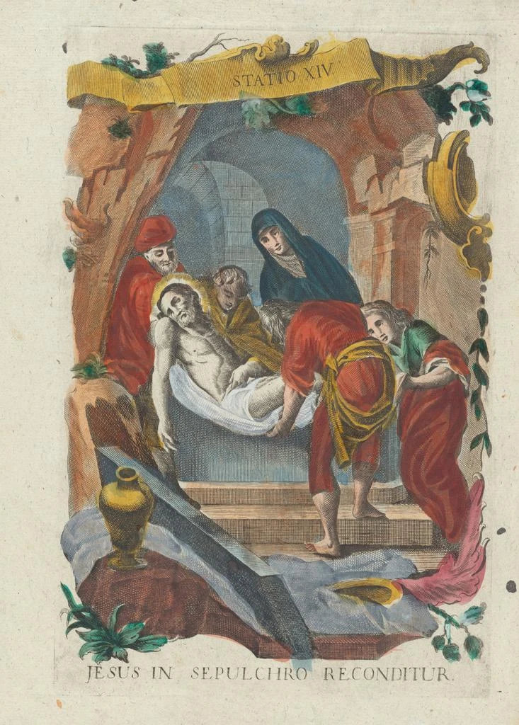 Kunsttryk Jesus bliver lagt i gravkammeret - Remondini-familien | Kunsttryk