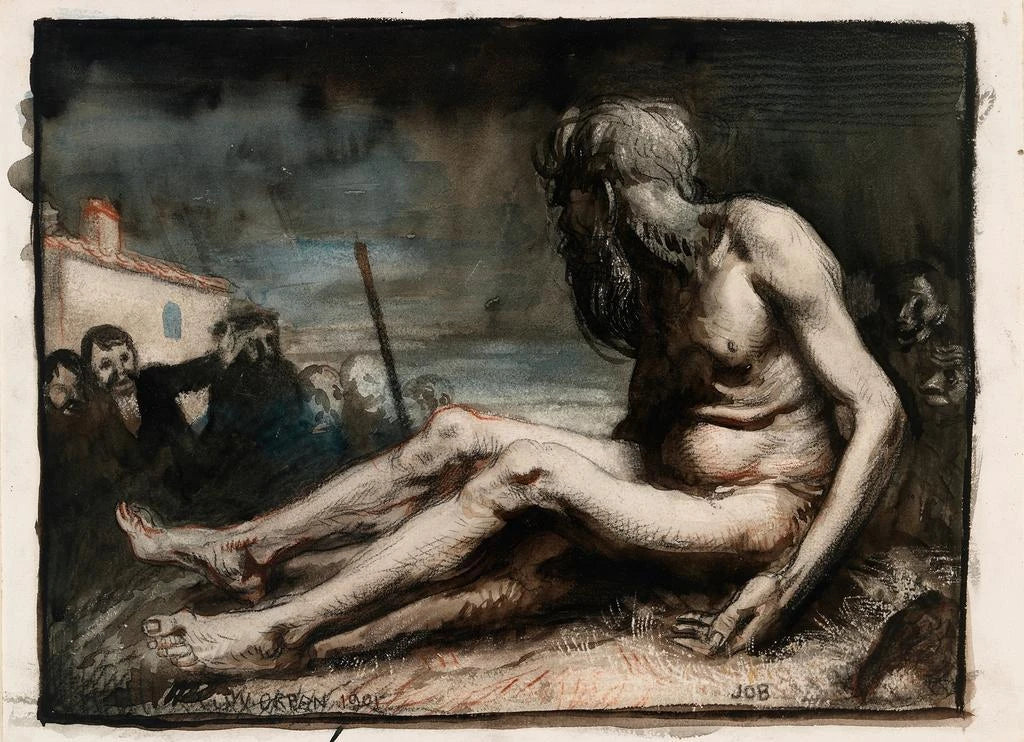 William Orpen, irsk maler aktiv i begyndelsen af det 20. århundrede, er kendt for sine portrætter og scener fra dagligdagen. Påvirket af impressionismen, udviklede han en unik stil, der kombinerer realisme og følsomhed. Orpen var også en visuel krønikør af Første Verdenskrig, hvilket dybt prægede hans værk. "Job på gødningen" er en del af en periode, hvor kunsten søgte at repræsentere den sociale sandhed, og Orpen, med sit skarpe blik, formåede at indfange øjeblikke fra det almindelige liv, hvilket vidner om vigtigheden af håndarbejde i samfundet på hans tid.