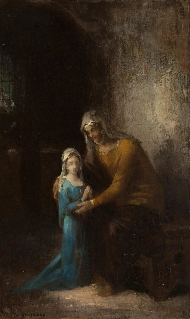 James Bertrand, aktiv i det 19. århundrede, er en kunstner, hvis arbejde er en del af den romantiske bevægelse, kendetegnet ved en søgen efter følelser og skønhed. Påvirket af tidens store mestre udvikler han en personlig stil, der kombinerer finesse og dybde. Hans værker fokuserer ofte på religiøse og mytologiske temaer, hvilket vidner om en stor følsomhed. Selvom han er mindre kendt end nogle af sine samtidige, har Bertrand sat et markant præg på det franske kunstlandskab, og "L'Éducation de la Vierge" er et perfekt eksempel, der viser hans evne til at fremkalde fortællinger fyldt med spiritualitet.