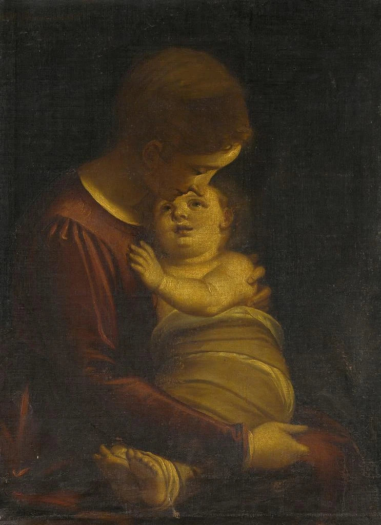 Vierge ved Barnet af Luca Cambiaso er et værk præget af blidhed og sindsro. På dette lærred blander de varme og lyse farver sig harmonisk, hvilket skaber en atmosfære af fred og fromhed. Viginens ansigt, omhyggeligt formet, udtrykker en uendelig blidhed, mens Jesusbarnet, der er krøllet op mod hende, synes at stråle af uskyld. Cambiasos teknik, kendetegnet ved flydende penselstrøg og en beherskelse af skygger, giver liv til denne hellige scene og inviterer betragteren til en introspektiv meditation.