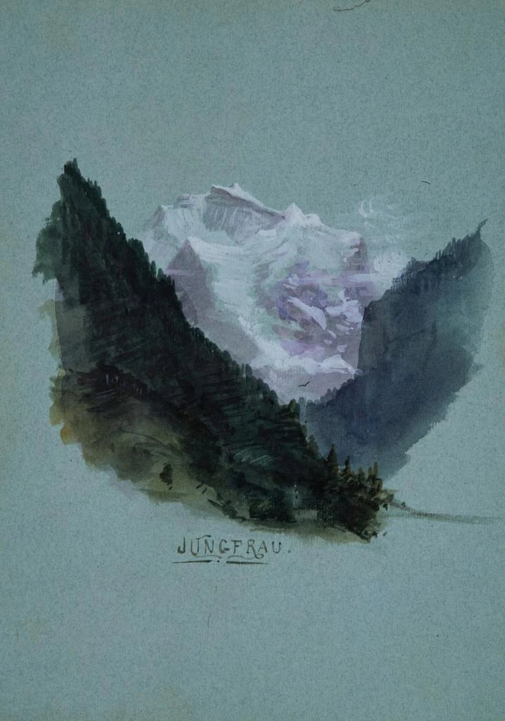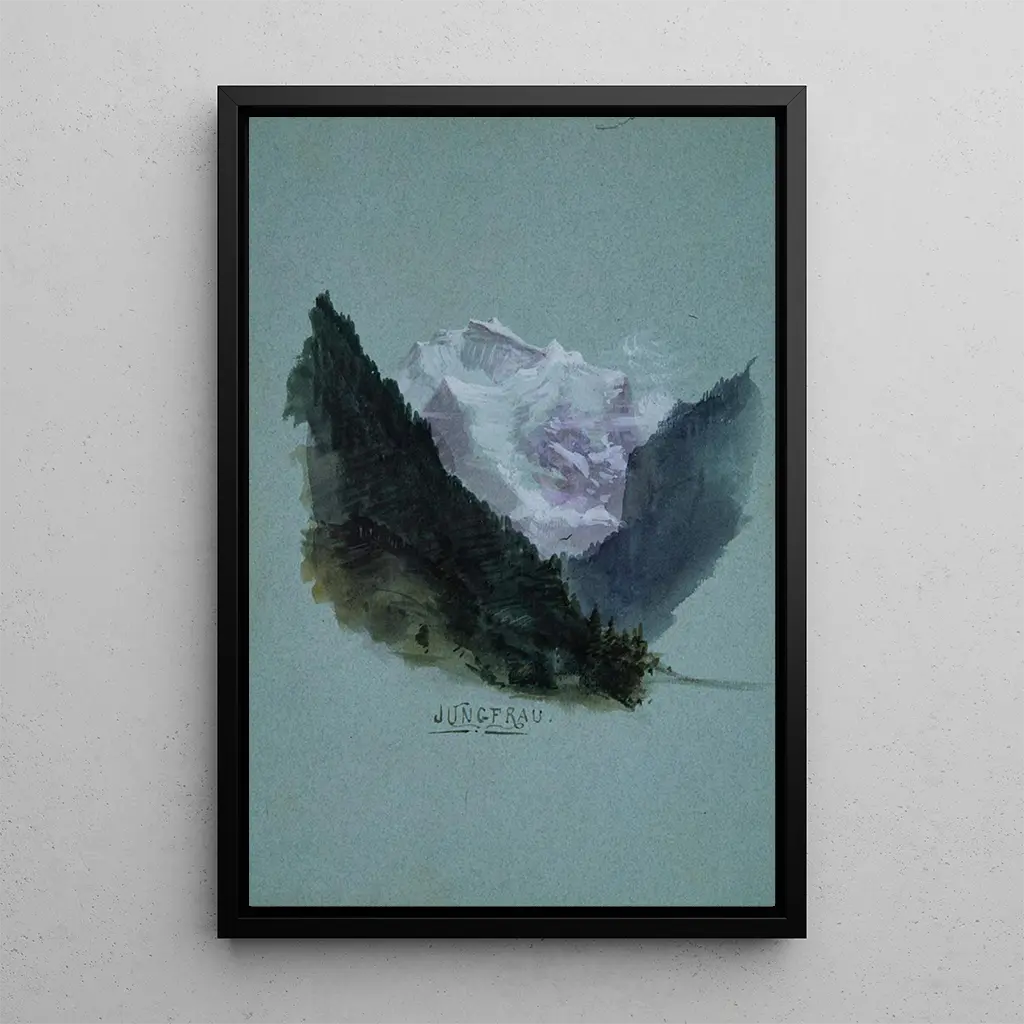 Kunsttrykket af Jungfrau tager os med til hjertet af de schweiziske Alper, hvor den navngivne bjergtop rejser sig med en imponerende storhed. John Singer Sargent, mester i portræt- og lyskunst, bruger en palette af bløde farver, der blander nuancer af blå og hvid for at fange sneens renhed og himlens dybde. Akvarelteknikken, let og flydende, giver værket en næsten æterisk atmosfære, der inviterer betragteren til at fordybe sig i dette majestætiske landskab. Kompositionen, balanceret og harmonisk, fremkalder en følelse af ro, som om tiden er standset foran denne naturlige skønhed.