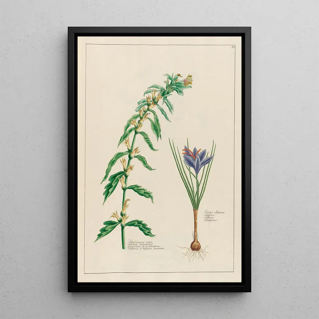 At vælge et kunsttryk af Jusquiame noir og Crocus sativus er at berige dit opholdsrum med et værk, der er både æstetisk og evocerende. Dette billede, ideelt til stuen eller kontoret, vil tilføre et strejf af sofistikeret mystik til din indretning. Kvaliteten af trykket sikrer en trofast gengivelse af farver og detaljer, så hver betragter kan nyde skønheden af de afbildede planter. Ved at integrere dette lærred i dit hjem skaber du et miljø, der hylder naturen, samtidig med at du tilføjer en kunstnerisk dimension til din hverdag.