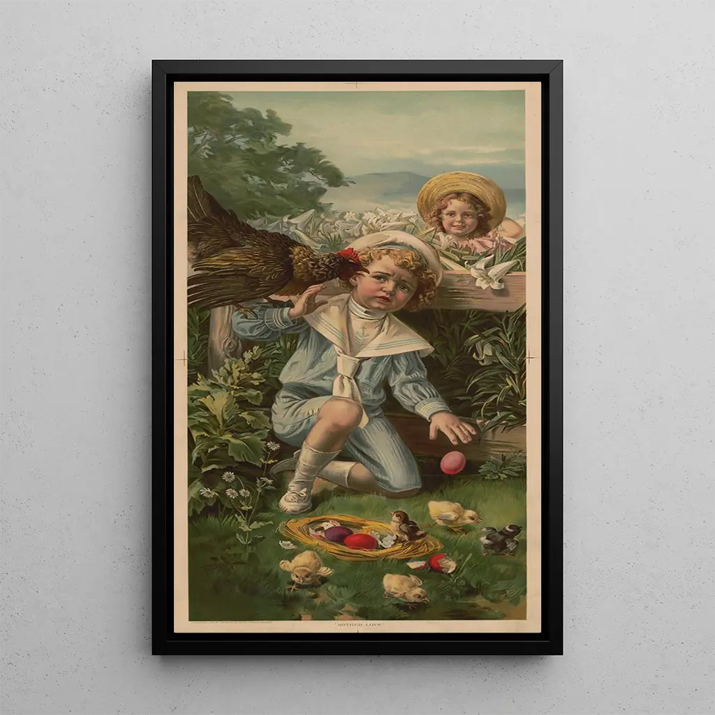 L'œuvre "Amour maternel" fremkalder en scene fyldt med blidhed og varme. Pastelfarver dominerer lærredet, hvilket skaber en beroligende atmosfære, der inviterer til eftertanke. Den anvendte teknik, sandsynligvis en fin akvarel, gør det muligt at gengive personernes udtryk med stor finesse. Her ser man en mor omgivet af sine børn, hvilket illustrerer det uadskillelige bånd, der binder dem sammen. Hvert eneste detalje, fra smil til blide gestus, vidner om den betingelsesløse kærlighed, der udspringer af denne familiescene. Denne kunsttryk "Amour maternel" er en sand hyldest til moderskabet, der fanger essensen af disse dyrebare øjeblikke.