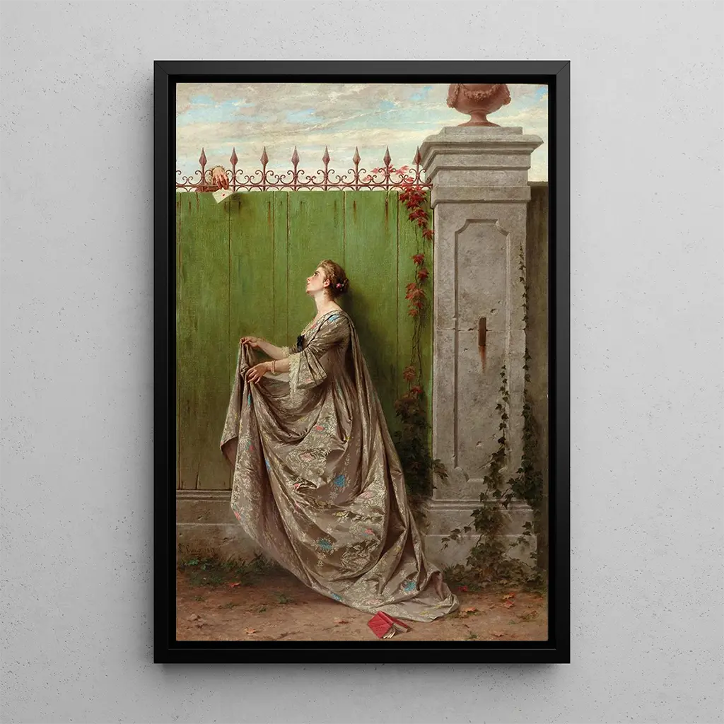 I "La lettre d'amour" dykker Luigi Crosio ned i et univers præget af ømhed og nostalgi. Kunstværket viser en ung kvinde, elegant klædt, der modtager et brev, som synes at indeholde løfter og drømme. De varme farver, fra gyldne nuancer til rosa toner, skaber en romantisk og intim atmosfære. Crosios teknik, der kombinerer realisme og impressionistiske strejf, giver liv til karakterernes følelser og gør hvert detalje tydeligt. Dette kunsttryk fremkalder ikke blot et frosset øjeblik i tiden, men også den universelle kærligheds følelser.
