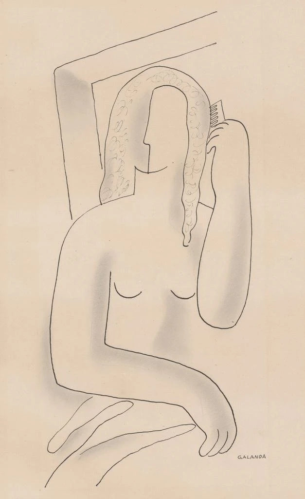 I værket "Peignage" dykker Mikuláš Galanda ned i et univers, hvor blidheden i bevægelserne blandes med en palette af livlige farver. Penselstrøgene, både flydende og præcise, fremkalder en yndefuld, næsten koreografisk bevægelse. Pastelfarverne overlapper hinanden og skaber en let og luftigt atmosfære. Galanda formår at fange essensen af et intimt øjeblik, hvor motivet synes at være fortabt i sine tanker, og inviterer til eftertanke. Dette lærred, med sin harmoniske balance, fremkalder en mærkbar ro og opfordrer hver enkelt til at standse op og værdsætte øjeblikkets skønhed.
