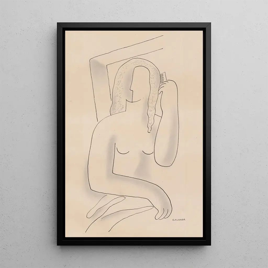 Kunsttrykket af "Peignage" er et dekorativt stykke, der vil fremhæve ethvert rum, uanset om det er en stue, et kontor eller et soveværelse. Dets trykkvalitet og trofasthed mod de originale farver sikrer enestående æstetisk gengivelse. Ved at vælge dette kunsttryk tilføjer du et strejf af elegance og ro til dit hjem. Galandas værk, med sin beroligende atmosfære, inviterer til refleksion og drømmeri, hvilket gør dette lærred til et ideelt valg for dem, der søger både skønhed og dybde i deres indretning.