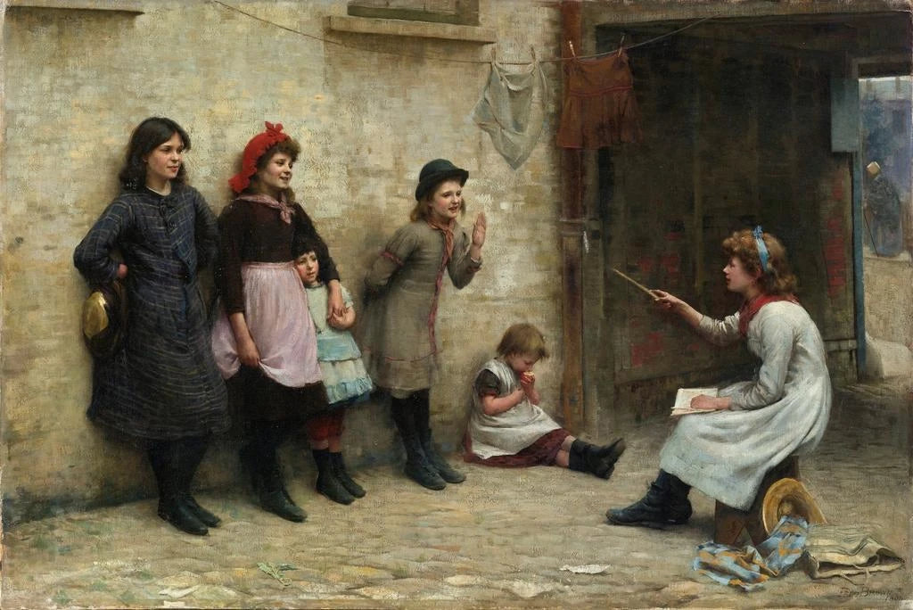 Frederick Brown, aktiv i slutningen af 1800-tallet og begyndelsen af 1900-tallet, er en britisk kunstner, hvis arbejde afspejler de sociale forandringer i hans tid. Opvokset i en periode, hvor kvinders uddannelse begyndte at blive værdsat, har han ofte skildret temaer relateret til uddannelse og dagligliv. Hans stil, forankret i realisme, gør det muligt at fange autentiske øjeblikke fra livet, samtidig med at den belyser kvinders kampe og sejre. "Kandidater til Girton" er emblemisk for denne overgangsperiode, hvor kunsten bliver et spejl af samfundets udviklinger.