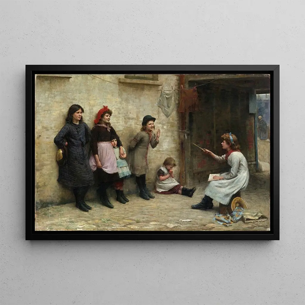I "Kandidater til Girton" fanger Frederick Brown essensen af universitetslivet med et strejf af realisme. Dette kunsttryk skildrer studerende i fuld forberedelse, omgivet af et miljø, der ånder af intellekt og ambition. De livlige farver og de omhyggelige detaljer i tøjet og udtrykkene hos personerne formidler en dynamisk og engagerende atmosfære. Hver figur synes at fortælle en historie, der vækker drømme og aspirationer hos de unge kvinder, der stræber efter videregående uddannelse. Brown formår at indfange dette øjeblik af spænding og begejstring, hvilket gør dette kunsttryk til en sand hyldest til uddannelse.