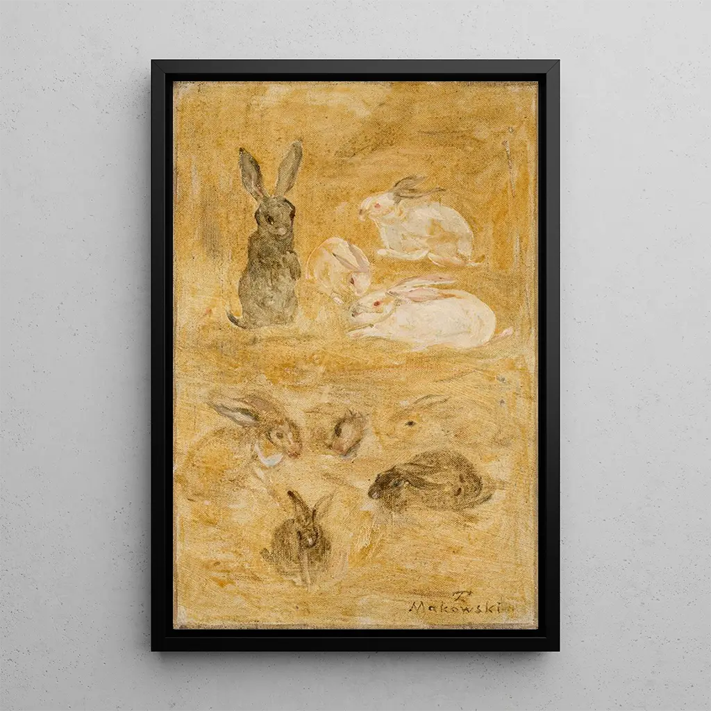 Tadeusz Makowski, polsk maler fra begyndelsen af det 20. århundrede, er kendt for sin unikke stil, der kombinerer naivisme og sofistikeret elegance. Påvirket af ekspressionismen har han formået at fange uskylden og glæden ved barndommen gennem sine værker. Hans karriere blomstrede i Paris, hvor han omgåsede andre avantgarde-kunstnere. "Lapins" er en del af denne periode, hvor kunstneren udforsker temaer relateret til naturen og dagligdagen, og skaber kompositioner, der vækker en blid nostalgi. Hans kunstneriske arv forbliver en inspirationskilde for dem, der søger at genopdage den enkle skønhed i livet.