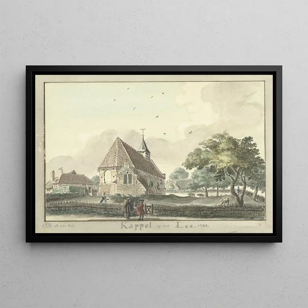 Kunsttrykket af Chapellen i Het Loo tager os med på en rejse ind i en arkitektonisk verden med stor elegance. Dette maleri, med sine harmoniske linjer og fine detaljer, fremkalder majestæten af kapellet, et symbol på pragtfuldheden af barokke konstruktioner. De varme, gyldne farver oplyser scenen, mens det naturlige lys fremhæver de delikate ornamenter på bygningen. Stemningen, der udspringer af dette værk, er både højtidelig og beroligende, og inviterer til refleksion og beundring af arkitektonisk kunst.