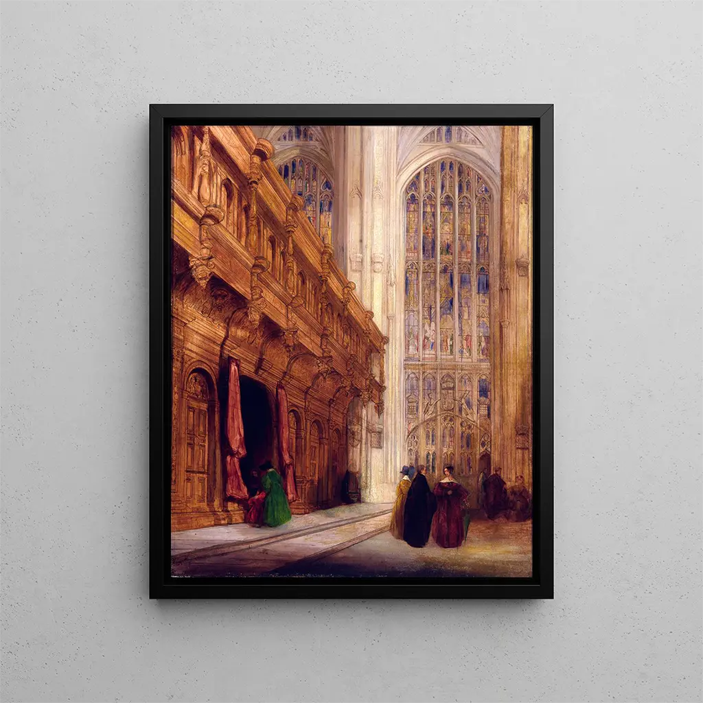 Reproduktion Chapelle du King's College Cambridge - David Roberts – Introduktion fængslende King's College-kirken i Cambridge er et mesterværk inden for gotisk arkitektur, et et sted, hvor historie og spiritualitet mødes. Kunsttrykket af Chapelle du King's College Cambridge - David Roberts transporterer os til dette hellige rum, og afslører dets pragtfulde hvælvinger og farverige glasvinduer. Gennem kunstens prisme fanger David Roberts selve essensen af denne ikoniske bygning og inviterer betragteren til at beundre ikke kun den arkitektoniske skønhed, men også den unikke atmosfære, der hersker i disse omgivelser. Det filtrerede lys gennem glasvinduerne, de minutiøse detaljer i skulpturerne – alt dette bliver levende under denne kunstners pensel og giver en immersiv oplevelse af kirken. Stil og værkets særpræg David Roberts' værk skiller sig ud med sin slående realisme og sin evne til at fremkalde dybe følelser. I sin skildring af kirken formår han at oversætte stedets majestæt og ro. Hvert penselstrøg synes at være fyldt med en historie, og hver skygge og hvert lys spiller en afgørende rolle i kompositionen. Roberts, mester i bylandskabskunst, bruger dristige perspektiver til at guide betragteren gennem bygningen og hylder arkitekturens storhed, samtidig med at han fremhæver de detaljer, der gør dette hellige rum unikt. Den valgte farvepalette, både rig og subtil, understreger kirkens tidløse karakter og skaber en atmosfære, der både er kontemplativ og inspirerende. Kunstneren og hans indflydelse David Roberts, født i Skotland i 1796, er en kunstner, hvis arbejde dybt har præget det 19. århundrede. En utrættelig rejsende, har han udforsket mange lande, herunder Egypten og Palæstina, og har formået at gengive sine indtryk med en unik følsomhed. Hans indflydelse på landskabskunsten er ubestridt, og hans værker har banet vejen for mange samtidige kunstnere. Ved at vælge at skildre historiske monumenter og ikoniske steder har Roberts bidraget til bevarelsen af den kollektive hukommelse gennem kunsten. Hans romantiske vision og passion for arkitektur afspejles i skildringen af Chapelle du King's College, hvor han formår at