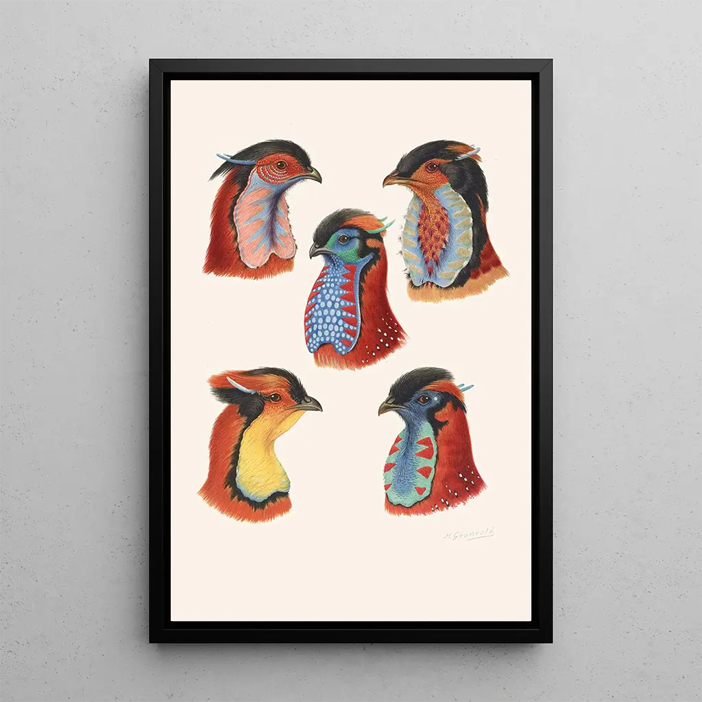 Caroncules de coqs tragopans : en hyldest til naturens skønhed "Caroncules de coqs tragopans" af Henrik Grönvold indfanger den livlige essens af fuglefaunaen. Dette værk, rigt på farver, udvider en strålende palette, hvor røde, blå og grønne farver flettes sammen for at skabe en levende og dynamisk atmosfære. Grönvolds teknik, der kombinerer akvarel og tegning, giver liv til disse majestætiske fugle, fremhæver deres fascinerende detaljer og karakteristiske karonklier. Hvert fjer synes at vibrere under lyset og inviterer betragteren til en omhyggelig betragning af den naturlige skønhed. Henrik Grönvold : en pioner inden for ornitologisk illustration Henrik Grönvold, aktiv i slutningen af 1800-tallet og begyndelsen af 1900-tallet, er anerkendt for sine betydningsfulde bidrag til kunsttryk af ornitologisk illustration. Oprindeligt fra Sverige, blev han påvirket af de videnskabelige opdagelser i sin tid, der søgte at dokumentere planetens biodiversitet. Grönvold formåede at kombinere videnskabelig præcision med kunstnerisk følsomhed, hvilket gjorde ham i stand til at skille sig ud inden for området for naturalistisk kunst. Hans værker, herunder "kunsttryk af Caroncules de coqs tragopans", vidner om en tid, hvor kunst og videnskab forenede sig for at fejre den naturlige verdens rigdom. En dekorativ tilføjelse med mange fordele Kunsttrykket af "Caroncules de coqs tragopans" er et ideelt dekorativt stykke til at berige dit hjem, uanset om det er i en stue, et kontor eller et soveværelse. Dets trykkvalitet sikrer en bemærkelsesværdig trofasthed til farverne og detaljerne i det originale værk, hvilket tilføjer et strejf af elegance og natur til dit rum. Dette maleri tiltrækker opmærksomhed og skaber samtaler, samtidig med at det tilføjer en kunstnerisk dimension til din indretning. Giv dig selv dette lærred for at forvandle dit miljø til et sted, hvor naturens skønhed er i centrum.