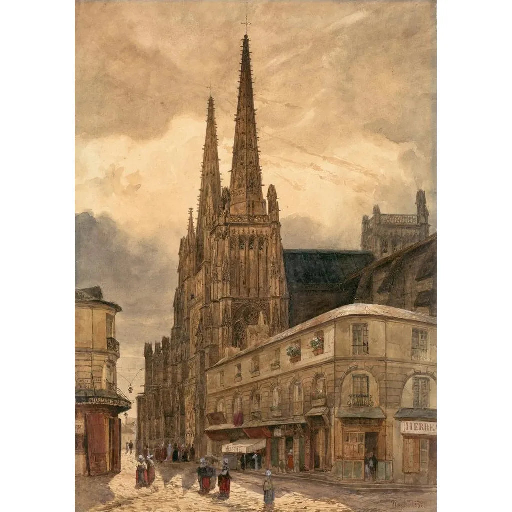 Adrien Dauzats, maler fra det XIX. århundrede, er anerkendt for sit talent til at fange de ikoniske monumenter i Frankrig. Hans værk, påvirket af den romantiske bevægelse, fokuserer på skildringen af landskaber og historiske arkitekturer. Ved at male Cathédrale Sainte-André vidner Dauzats om sin tilknytning til den franske kulturarv og sit ønske om at bevare mindet om disse bygninger. Hans kunstneriske tilgang, der kombinerer præcision og følsomhed, gør ham til en vigtig aktør i sin tids kunst, og bidrager til at fremhæve arkitektoniske skatte.