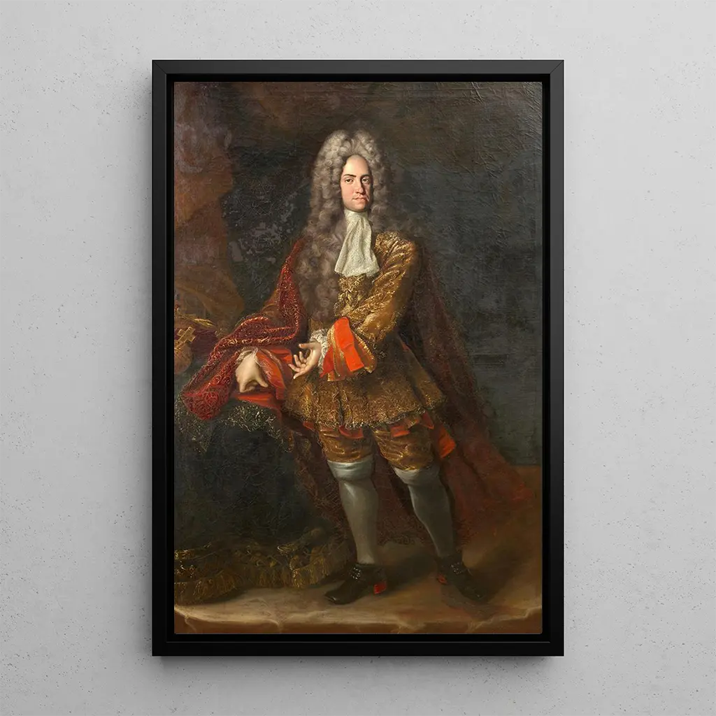 Kunstværket af kejser Charles VI tager os med ind i det majestætiske univers ved det kejserlige hof. Dette maleri, udført med en bemærkelsesværdig mestring, fanger selve essensen af kongelighed gennem Charles VIs gennemtrængende blik. De rige farver og de raffinerede detaljer i tøjet vidner om kejserens høje status. Teknikken med oljemaling tillader en realistisk gengivelse af teksturen i stoffet og glansen af ornamenterne, hvilket skaber en atmosfære af storhed. Dette portræt, både imponerende og intimt, inviterer betragteren til at reflektere over magten og det ansvar, der følger med at være en monark.