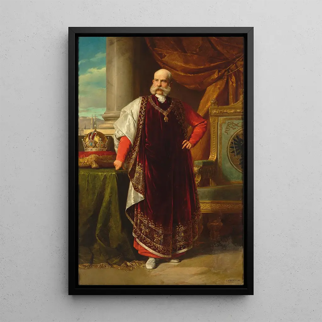L'œuvre "Emperor Franz-Joseph" af Eduard Lebiedzki indfanger essensen af en ikonisk hersker fra det 19. århundrede. Maleriet skiller sig ud med sine rige og dybe farver, hvor nuancer af guld og blå blander sig for at skabe en både højtidelig og dynamisk atmosfære. Lebiedzki's teknik, der kombinerer realisme og minutøse detaljer, hylder kejserens imponerende stature. Det gennemtrængende blik på personen, kombineret med hans udsmykkede uniform, fremkalder en rolig autoritet, samtidig med at det inviterer beskueren til refleksion over magt og ansvar.