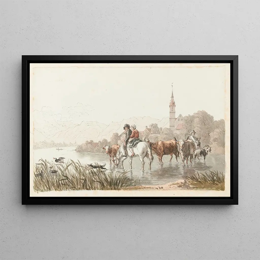 Kirchberg du Sud-Ouest : en harmoni mellem natur og arkitektur Kunsttrykket Kirchberg du Sud-Ouest af Johann Jakob Biedermann tager os med til et landskab, hvor natur og arkitektur mødes med ynde. De bløde nuancer af grønt og blåt blander sig harmonisk, hvilket skaber en fredelig og eftertænksom atmosfære. Akvarellens teknik, med sine delikate nuancer, giver liv til hver detalje, fra majestætiske træer til bygninger, der smelter sammen med omgivelserne. Dette maleri fremkalder en ro, der inviterer til drømme, hvilket gør dette værk til et rigtigt visuelt digt. Johann Jakob Biedermann : en mester i romantisk landskab Johann Jakob Biedermann, aktiv i det 19. århundrede, er kendt for sine landskaber præget af romantik. Påvirket af tidens store mestre, har han formået at fange skønheden i schweiziske landskaber med en unik følsomhed. Hans stil, kendetegnet ved afbalancerede kompositioner og en subtil palet, afspejler harmonien mellem menneske og natur. Biedermann spillede en væsentlig rolle i udviklingen af landskabsmaleri i Schweiz og præger sin tid med værker, der fortsat inspirerer nutidens kunstnere. En dekorativ kunsttryk med mange fordele Kunsttrykket Kirchberg du Sud-Ouest er et ideelt dekorativt stykke til at berige dit hjem, uanset om det er i stuen, på kontoret eller i soveværelset. Dets trykkvalitet og trofasthed mod de originale farver gør det til et attraktivt valg for kunstelskere. Dette maleri tilføjer et strejf af ro og elegance, samtidig med at det vækker beundring blandt dine gæster. Med sin ubestridelige æstetiske appel er dette lærred et værdifuldt tilskud til enhver kunstsamling, der forvandler dit rum til et ægte fredens tilflugtssted.
