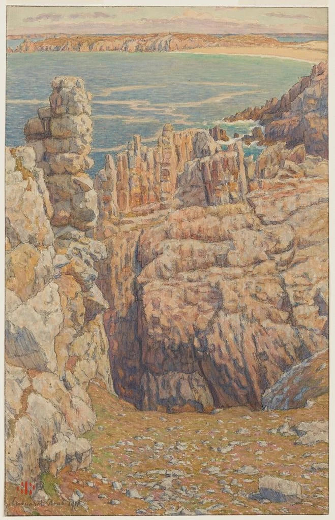 Henri Rivière, fransk kunstner fra det 19. århundrede, er kendt for sin rolle i impressionismens bevægelse og sin fascination af maritime landskaber. Påvirket af mestre som Monet og Pissarro udvikler Rivière en unik stil, der fokuserer på lys og farve. Hans karriere er præget af rejser gennem Frankrig, men det er i Bretagne, han finder en uendelig inspirationskilde. Falaises de Camaret illustrerer perfekt hans tilgang, der blander realisme og impressionisme for at fange naturens essens. Hans værk fortsætter med at inspirere og fascinere, hvilket vidner om vigtigheden af landskabskunst i kunsthistorien.