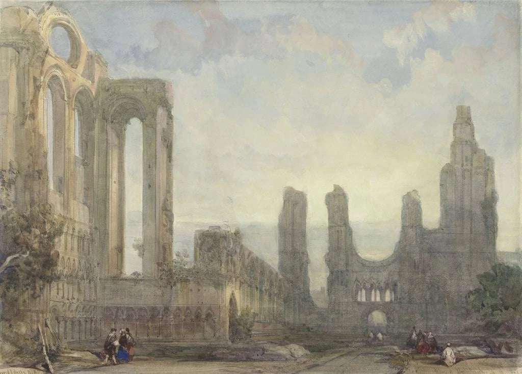 Kunsttrykket af Ruinerne af Arbroath-klosteret om aftenen, udført af David Roberts, tager os med til et landskab fyldt med melankoli og storhed. Lærredet indfanger majestæten af ruinerne, badet i det gyldne skær fra skumringen. De varme farver og de fine skygger skaber en atmosfære, der er både fredelig og mystisk. Roberts' teknik, der blander realisme og romantik, inviterer os til at beundre skønheden i fortidens levn, samtidig med at den vækker refleksion over tidens gang og livets skrøbelighed.