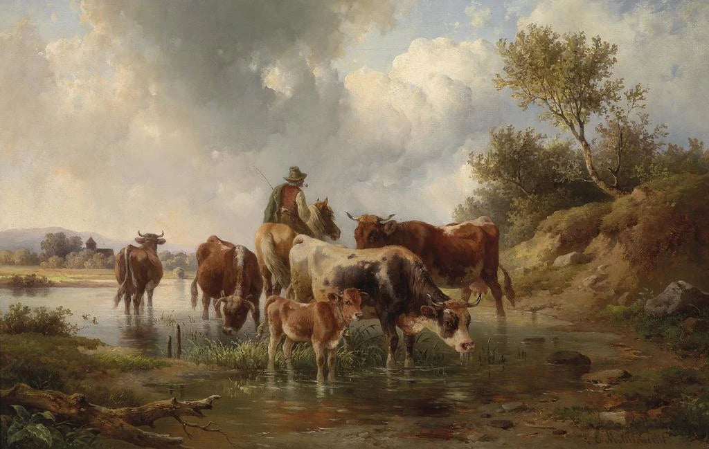 Ko med hyrder ved vadestedet - Edmund Mahlknecht