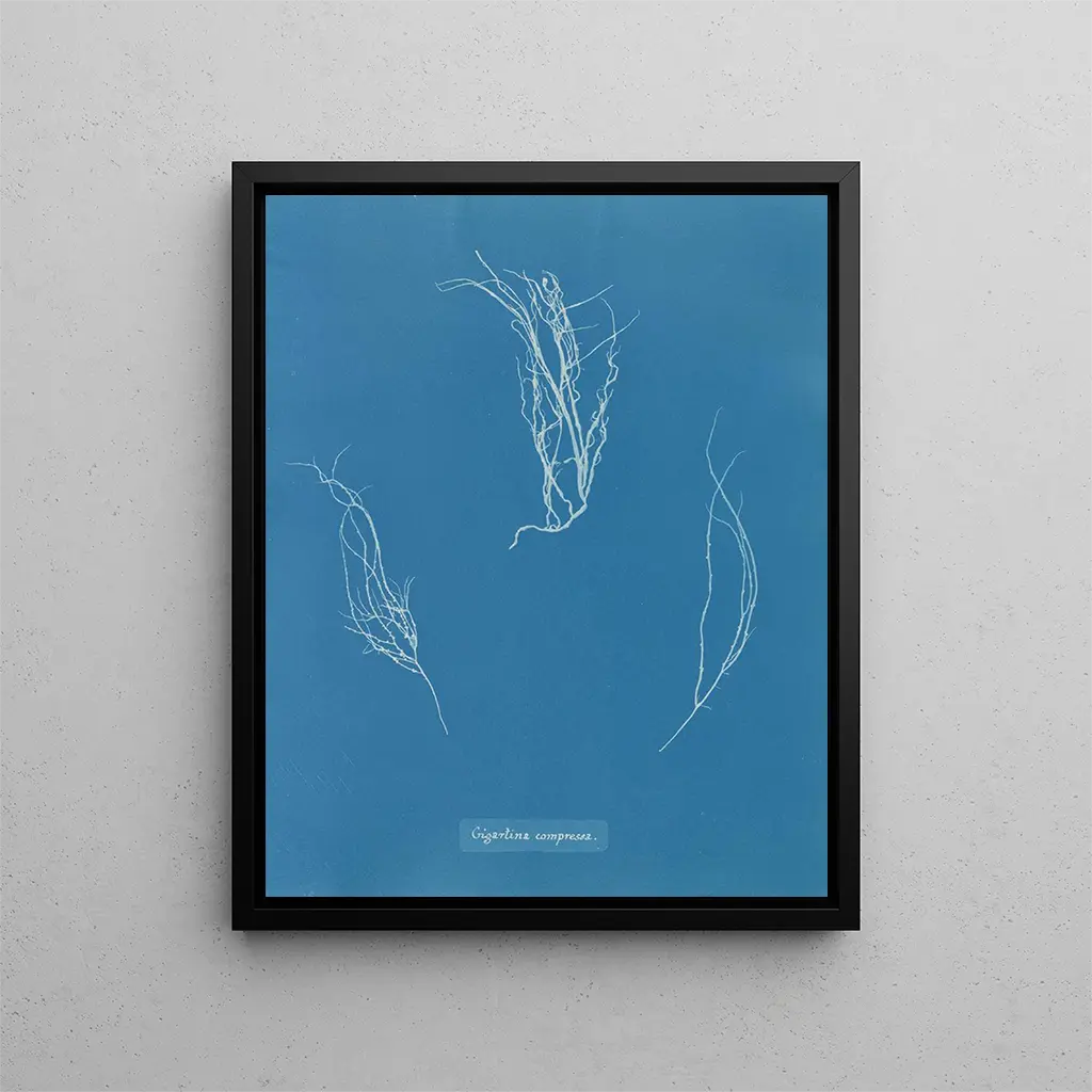 Stilen af Comprimé Gigartina skiller sig ud gennem sin unikke tilgang til fotografi. Ved at anvende cyanotypeteknik skabte Atkins dybdegående og klare tryk, hvor nuancer af blå smelter harmonisk sammen med de delikate silhuetter af alger. Hvert detalje er omhyggeligt gengivet, hvilket afslører vener og konturer af havplanter med imponerende nøjagtighed. Dette valg af teknik, både innovativt og æstetisk, giver værket en næsten drømmeagtig atmosfære, der blander videnskab og kunst i en subtil dans. Kompositionen, både enkel og sofistikeret, tillader øjet at dvæle ved formerne og skaber en intim forbindelse mellem betragteren og naturen. I denne forstand er Comprimé Gigartina mere end blot en simpel gengivelse; det er en invitation til at udforske livets mysterier i havet.