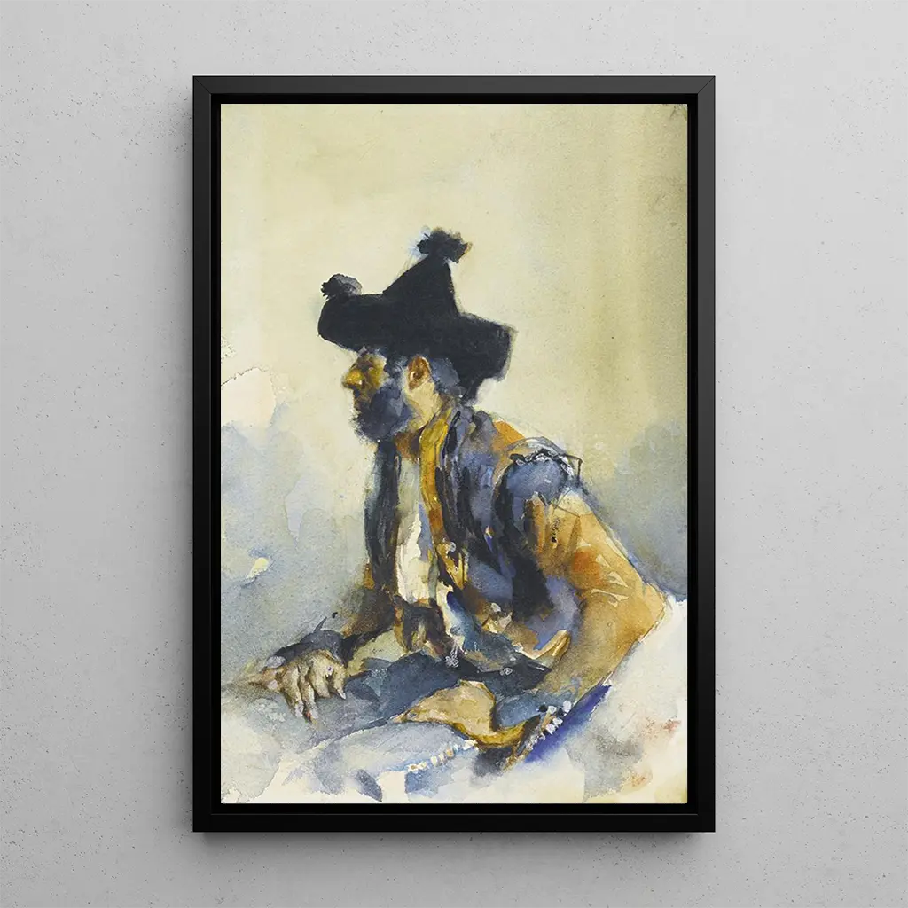 Kunsttrykket af Roi des Gitans dykker ned i det livlige og farverige univers af romakulturer. John Singer Sargent, med sit enestående talent for portrætkunst, fanger essensen af sit motiv, en mand med et intenst blik og stolt holdning. De rige og dybe farver samt de omhyggelige detaljer i de traditionelle beklædningsgenstande skaber en levende og dynamisk atmosfære. Dette værk, både intimt og kraftfuldt, inviterer os til at udforske skønheden og kompleksiteten af den gitanske kultur, samtidig med at det fremhæver dens medlemmers værdighed.