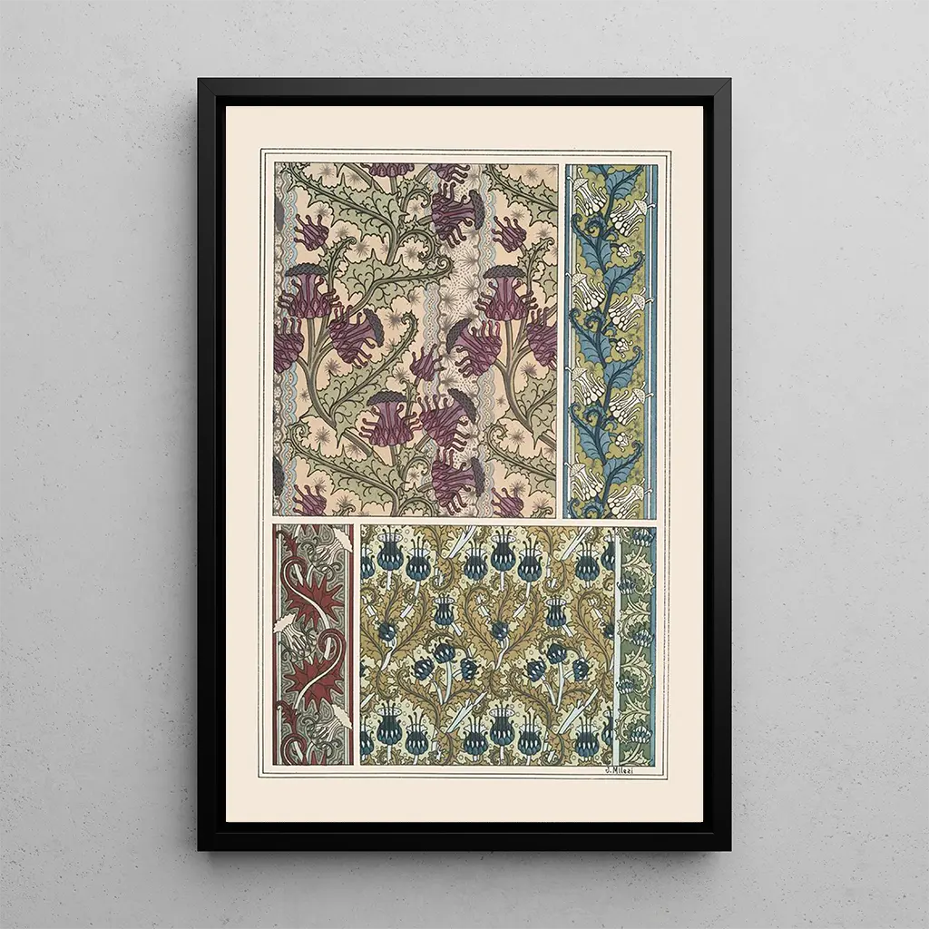 Kunsttrykket Chardon 2 af Maurice Pillard Verneuil er et livligt værk, der fanger opmærksomheden med sin palette af strålende farver og sine organiske former. Grene, afbildet med fin præcision, synes at danse på lærredet og skaber en atmosfære, der er både glædelig og dynamisk. Nuancer af lilla, grøn og gul blander sig harmonisk og fremkalder den vilde skønhed i naturen. Kunstnerens teknik, der kombinerer impressionisme og art nouveau, giver en visuel dybde, der inviterer til eftertanke. Hvert detalje, hver blomst er omhyggeligt arbejdet, hvilket vidner om en enestående håndværksmæssig kunnen.