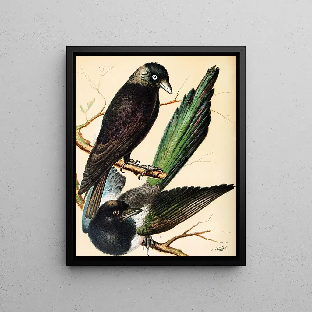 I "Corbeau, pie" udforsker W. A. Blakston en mindre traditionel side af ornitologi ved at fremhæve fugle, der ofte opfattes som mere mystiske og mørke. Gennem dette værk formår kunstneren at forvandle arter som ravnen og kragen til motiver for skønhed og elegance. Blakston leger med kontrasterne mellem lys og skygge for at fremhæve dybden i fjerdragten og fuglenes personlighed. Dette værk, både mørkt og fascinerende, kan tilføje et dramatisk præg til ethvert interiør, tiltrække opmærksomhed og vække nysgerrighed. Kunsttryk af dette værk er en smuk måde at fejre skønheden i den varierede fugleverden. Opdag kunsttrykket på Artem Legrand.