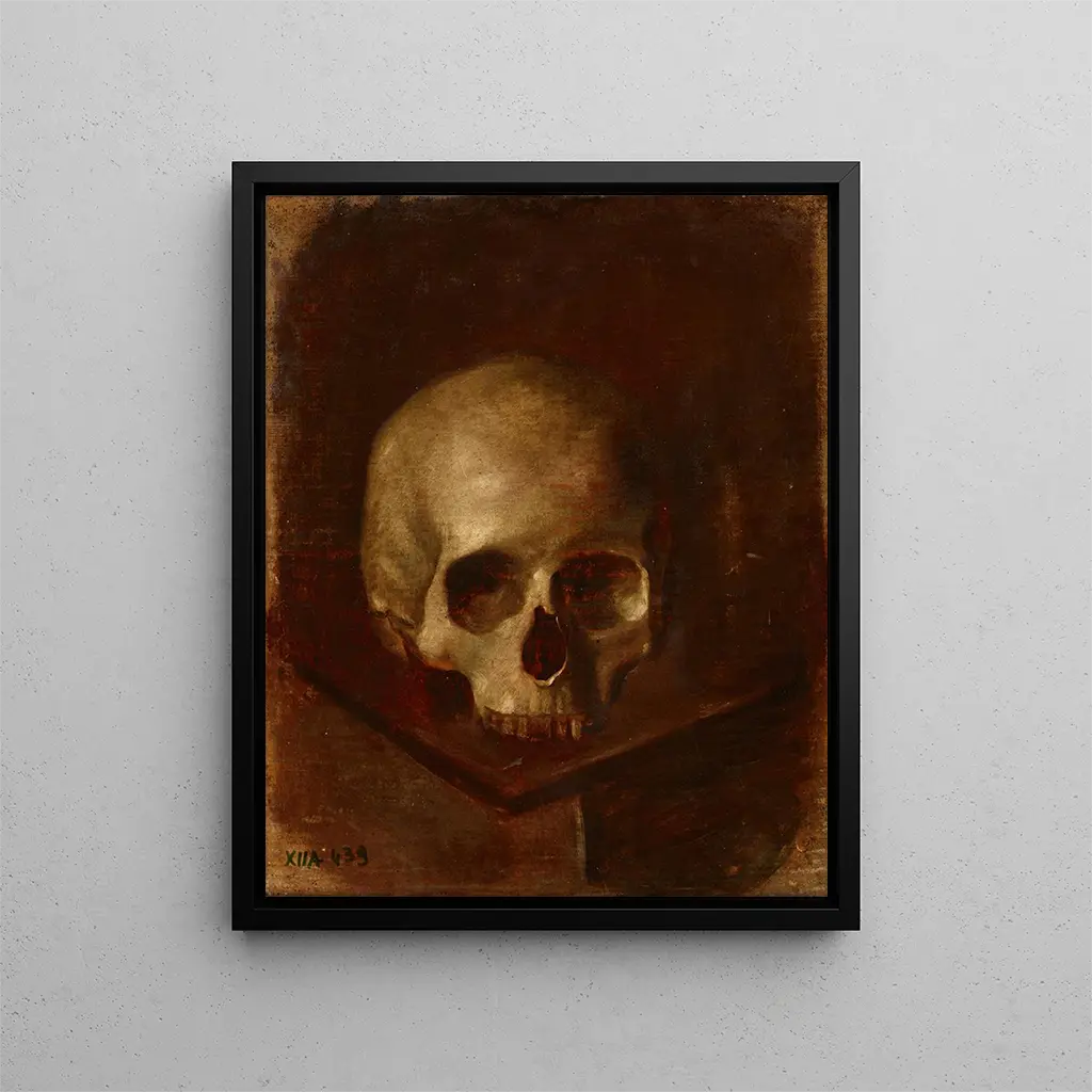 Reproduktion Kranie - Anonym – Fascinerende introduktion I det fascinerende kunstunivers transcenderer visse værker deres epoke for at blive tidløse symboler. "Kranie - Anonym" er et perfekt eksempel, der forener mysterium og dybde, samtidig med at det inviterer beskueren til refleksion over den menneskelige tilstand. Dette værk, hvis oprindelse forbliver i skyggerne, vækker universelle temaer som dødelighed, livets skrøbelighed og det flygtige. Ved at betragte dette værk føres man ind i en stilfærdig, men kraftfuld dialog, hvor hvert blik afslører en ny fortolkning. Den anonyme kunstner, med sit dristige valg om at skildre et kranie, konfronterer os med vores egen eksistens og opfordrer os til at udforske grænserne for vores perception. Værkets stil og særpræg Stilen i "Kranie - Anonym" skiller sig ud gennem sin tilsyneladende enkelhed og symbolske dybde. Værket, med sine rene linjer og sparsomme former, fremkalder en æstetik, der leger med minimalisme, samtidig med at det er rigt på betydninger. Kraniet, traditionelt forbundet med døden, præsenteres her på en måde, der transcenderer den simple makabre skildring. Lys- og skygge nuancer, der leger over overfladen, skaber en slående effekt, der inviterer beskueren til at reflektere over livets og dødens begreber. Dette værk nøjes ikke med at afbilde et objekt; det bliver et spejl for vores egne tanker og en invitation til at udforske vores forhold til dødeligheden. Styrken ved "Kranie - Anonym" ligger i dets evne til at formidle komplekse følelser gennem en enkel form, hvilket gør oplevelsen af betragning endnu mere immersiv. Kunstneren og hans indflydelse Kunstneren bag "Kranie - Anonym" forbliver i skyggerne, men hans indflydelse på kunstverdenen er ubestridt. Ved at vælge at forblive anonym skaber han en aura af mystik, der forstærker effekten af hans værk. Denne tilgang, langt fra at være tilfældig, inviterer til refleksion over kunstnerens rolle i samfundet og over, hvordan kunst kan eksistere uafhængigt af individet. Dette valg om anonymitet kan også tolkes som en kritik af den berømthedskultur, der ofte omgiver den moderne kunstverden.