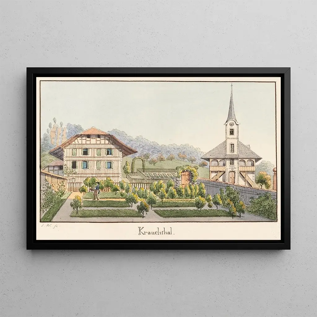 Krauchthal : et livligt maleri fyldt med liv og lys Kunsttrykket af Krauchthal, skabt af Jakob Samuel Weibel, fremkalder en idyllisk scene, hvor naturen blomstrer i en palette af strålende farver. De frodige grønne marker blander sig med de gyldne nuancer af solstrålerne, hvilket skaber en varm og indbydende atmosfære. Kunstnerens teknik, der kombinerer præcision og impressionisme, gør det muligt at fange lyset på en næsten magisk måde. Hvert penselstrøg synes levende og inviterer betragteren til at fordybe sig i dette idylliske landskab, hvor tiden synes at stå stille. Dette kunsttryk er en sand hyldest til de schweiziske landskaber, en opfordring til refleksion og flugt. Jakob Samuel Weibel : en vidne til sin tid Jakob Samuel Weibel, aktiv i det 19. århundrede, er en schweizisk kunstner, hvis arbejde er en del af den romantiske bevægelse. Inspireret af alpelandskaber og naturligt lys, formåede Weibel at fange essensen af naturen med en unik følsomhed. Hans karriere er præget af en dyb tilknytning til sit hjemland, Schweiz, og en vilje til at skildre skønheden i dets landskaber. Selvom han er mindre kendt end nogle af sine samtidige, forbliver hans kunstneriske arv værdifuld og vidner om en tid, hvor naturen blev fejret gennem kunsten. Hans værker, herunder Krauchthal, fortsætter med at inspirere og forbløffe kunstelskere. En dekorativ tilføjelse med mange fordele Kunsttrykket af Krauchthal er et ideelt valg til at forskønne dit hjem, uanset om det er i stuen, på kontoret eller i soveværelset. Dets trykkvalitet sikrer en bemærkelsesværdig trofasthed over for farver og detaljer i det originale værk, hvilket giver en æstetisk tiltrækning, der ikke kan ignoreres. Når det er ophængt på væggen, tilføjer dette lærred et strejf af ro og natur til dit rum, samtidig med at det skaber samtaleemner om kunst og skønheden i landskaber. Ved at integrere dette kunsttryk i din indretning vælger du et stykke, der kombinerer elegance og historie, og dermed beriger dit miljø på en meningsfuld måde.