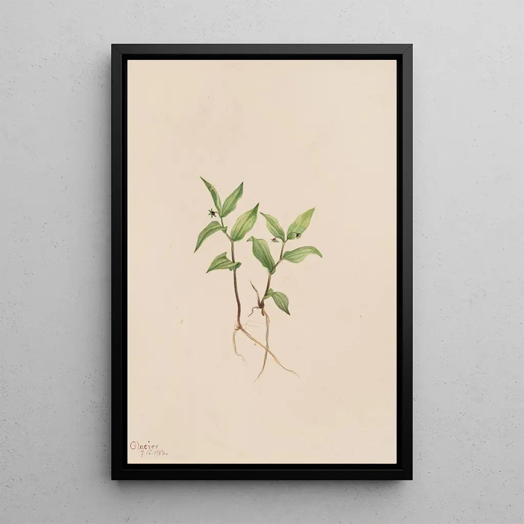 Den kunsttryk af Kruhsea Kruhsea streptopoides af Mary Vaux Walcott præsenterer en fascinerende udforskning af den unikke flora. De livlige nuancer af grøn og gul, kombineret med formernes delikatesse, fremkalder rigdommen i de økosystemer, hvor denne plante trives. Walcotts teknik, der kombinerer præcision og følsomhed, gør det muligt at mærke teksturen af bladene og letheden af blomsterne. Dette værk er en ægte fejring af biodiversiteten, der inviterer betragteren til at værdsætte skønheden i de ofte ukendte plantearter.