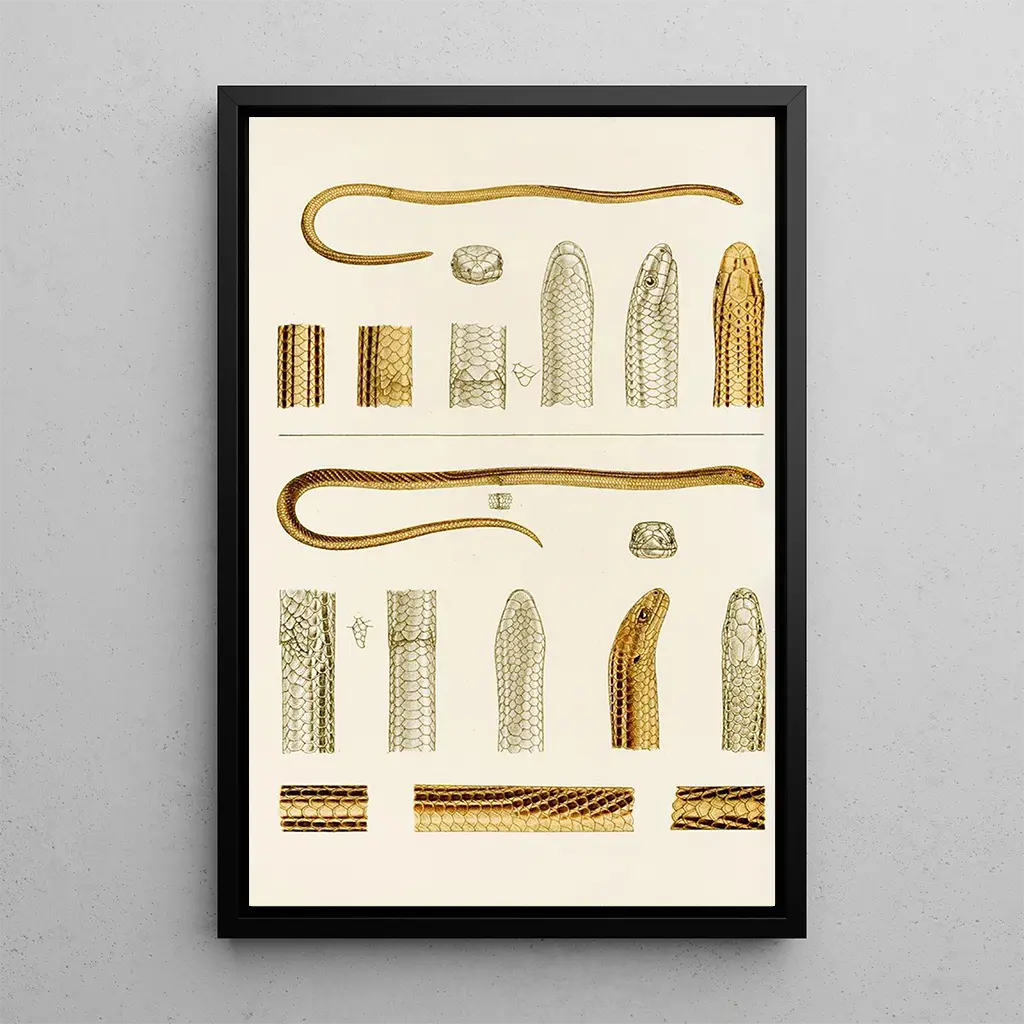 Reproduktion af Reptiles IV er et værdifuldt tilskud til enhver kunstsamling, der bringer et strejf af natur og elegance ind i dit hjem. Uanset om det er i stuen, på kontoret eller i soveværelset, tiltrækker dette lærred øjet og vækker interesse. Dets trykkvalitet sikrer en trofast gengivelse af farver og detaljer i det originale værk, hvilket garanterer en berigende visuel oplevelse. Ved at vælge dette lærred vælger du en dekoration, der kombinerer æstetik og uddannelse, samtidig med at den fejrer skønheden i den naturlige verden. Denne kunsttryk er et ideelt valg for dem, der ønsker at forskønne deres rum, samtidig med at de udtrykker deres smag for kunst og videnskab.