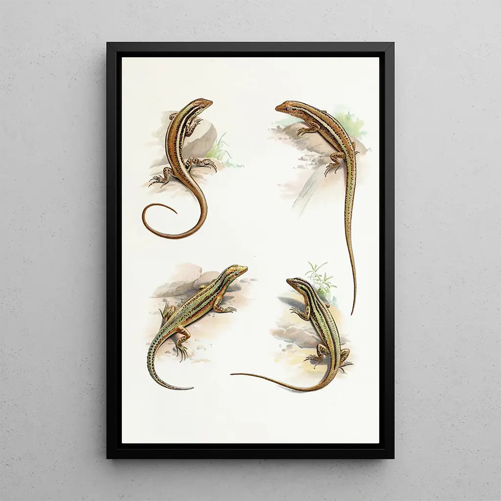 Cryptoblepharus : et kig på krybdyrskønhed I denne kunsttryk af Cryptoblepharus fanger kunstneren Thomas Barbour den fascinerende essens af dette krybdyr. De minutøse detaljer i huden, med de delikate skæl, skaber en næsten levende atmosfære. Nuancerne af grøn og brun blandes harmonisk, hvilket vækker minder om dyrets naturlige levesteder. Lyset leger over overfladerne, fremhæver teksturen og dybden i værket. Barbour formår at formidle en følelse af ro og nysgerrighed, hvilket inviterer betragteren til at beundre den ofte oversete skønhed i krybdyr. Thomas Barbour : en pioner inden for zoologisk illustration Thomas Barbour, naturforsker og illustratør fra det 20. århundrede, dedikerede sit liv til studiet og fremstillingen af dyrearter. Hans arbejde befinder sig i krydsfeltet mellem kunst og videnskab, hvor han formåede at forene videnskabelig præcision med æstetik. Påvirket af de naturalistiske opdagelsesrejser i sin tid, bidrog Barbour til dokumentationen af mange arter, hvoraf nogle i dag er truede. Hans værker, som dette kunsttryk af Cryptoblepharus, vidner om vigtigheden af biodiversitet og nødvendigheden af at bevare den. Hans unikke stil, der kombinerer realisme og følsomhed, har sat sit præg på den zoologiske illustration. En dekorativ tilføjelse med mange fordele Kunsttrykket af Cryptoblepharus er et dekorativt stykke, der passer perfekt ind i forskellige rum, uanset om det er en stue, et kontor eller et soveværelse. Dets trykkvalitet og trofasthed mod de originale detaljer gør det til et ideelt valg for naturelskere og kunstentusiaster. Dette billede tilføjer et strejf af elegance og nysgerrighed, hvilket skaber samtaler om dyrenes skønhed. Ved at vælge dette lærred vælger du et værk, der beriger din indretning og samtidig fejrer dyrelivets rigdom.